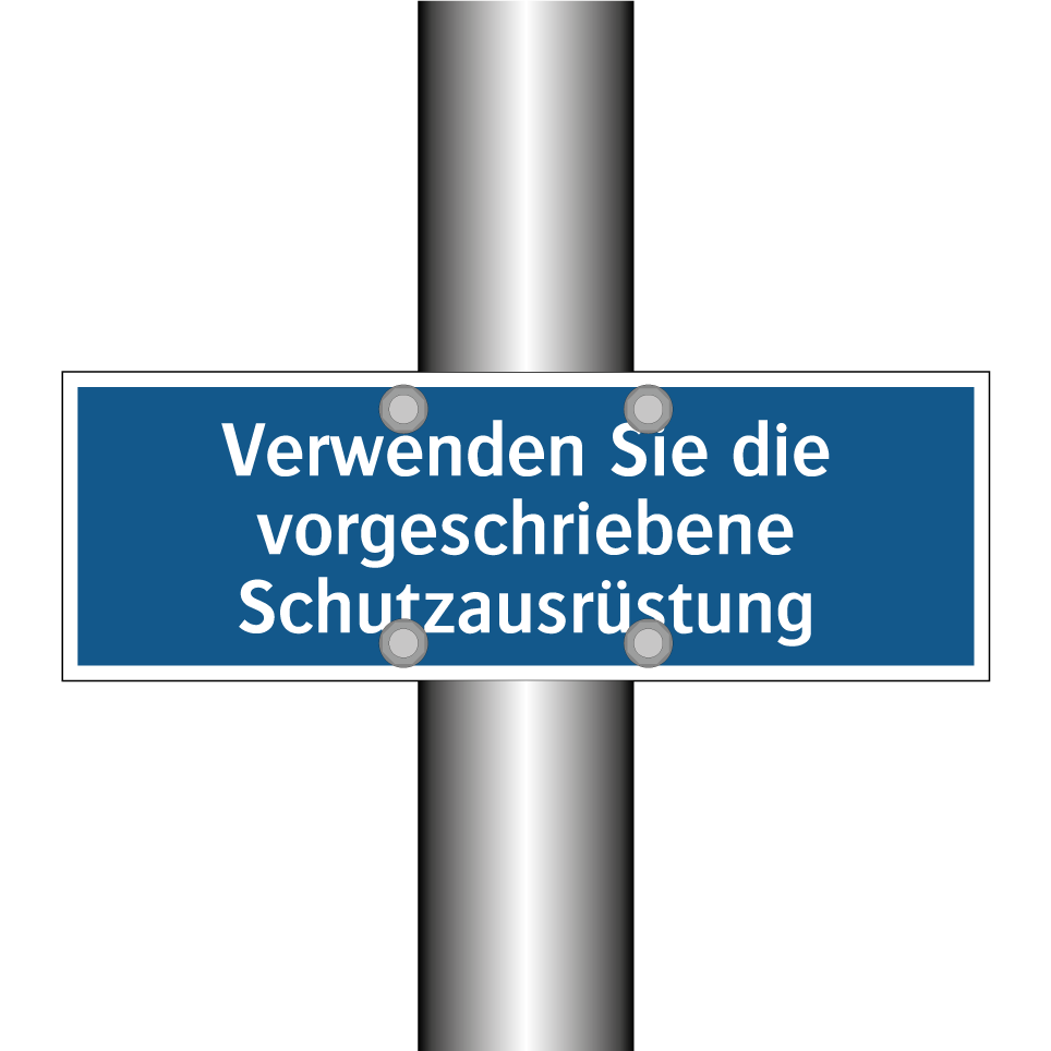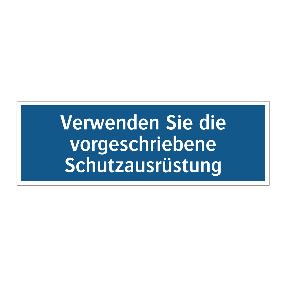Gebotsschild mit dem Text Verwenden Sie die vorgeschriebene Schutzausrüstung