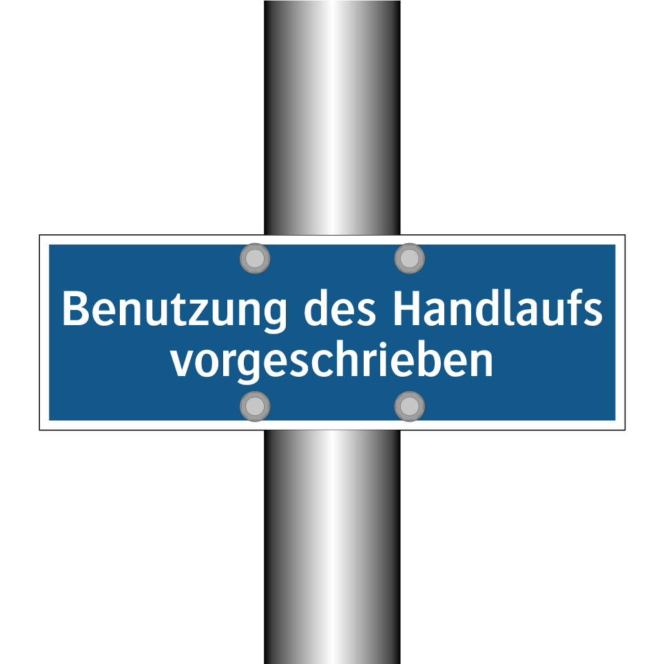 Gebotsschild mit dem Text Benutzung des Handlaufs vorgeschrieben