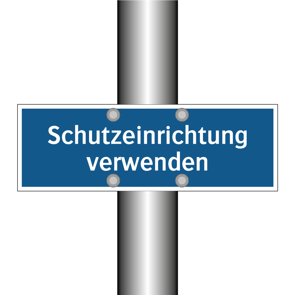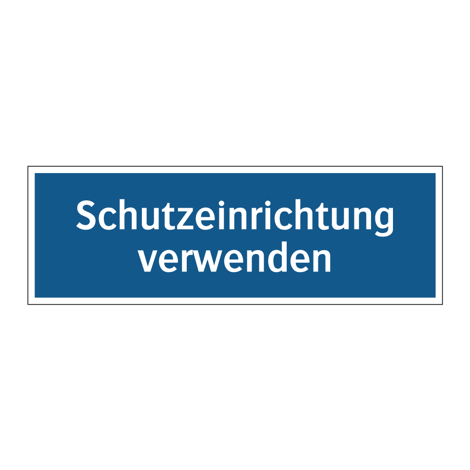 Gebotsschild mit dem Text Schutzeinrichtung verwenden