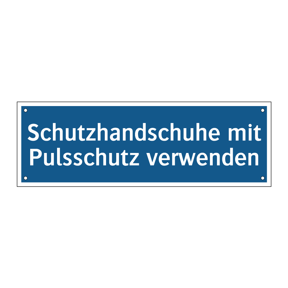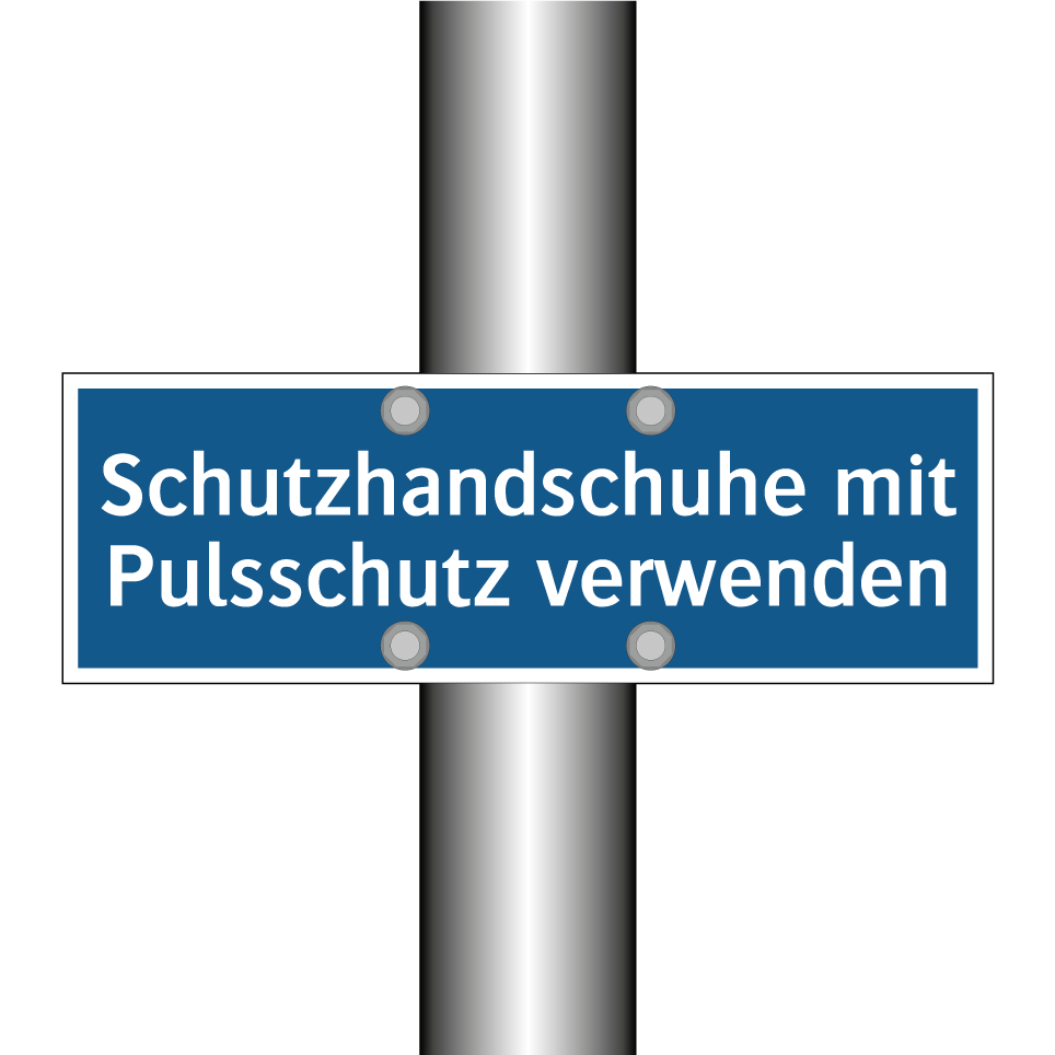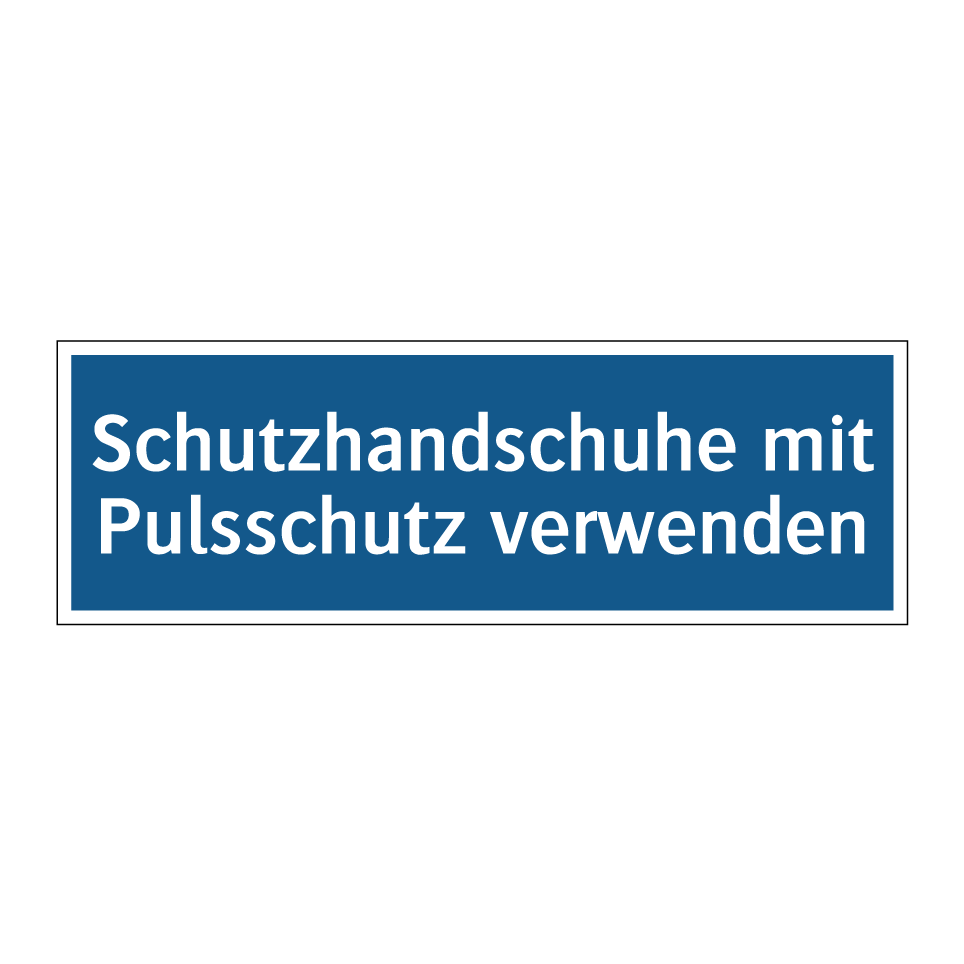 Gebotsschild mit dem Text Schutzhandschuhe mit Pulsschutz verwenden