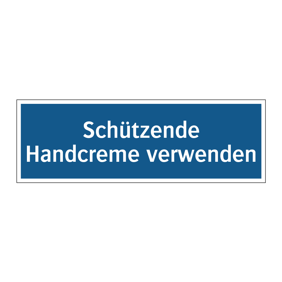 Gebotsschild mit dem Text Schützende Handcreme verwenden