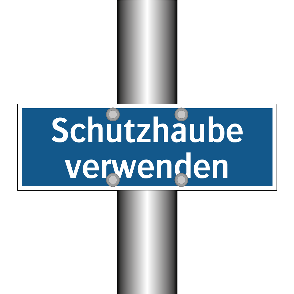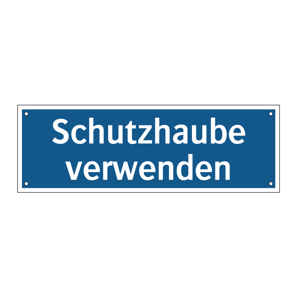 Gebotsschild mit dem Text Schutzhaube verwenden