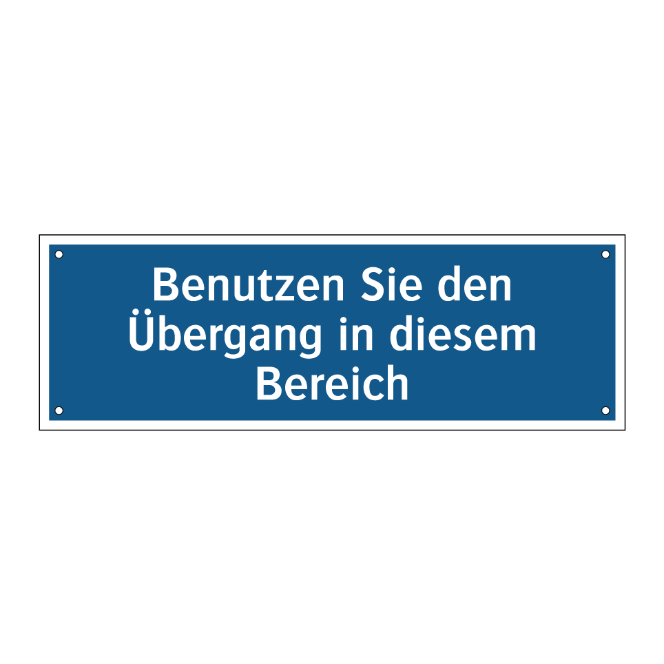 Gebotsschild mit dem Text Benutzen Sie den Übergang in diesem Bereich
