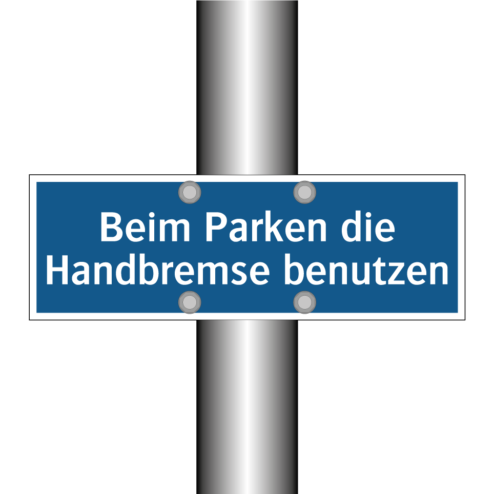 Gebotsschild mit dem Text Beim Parken die Handbremse benutzen