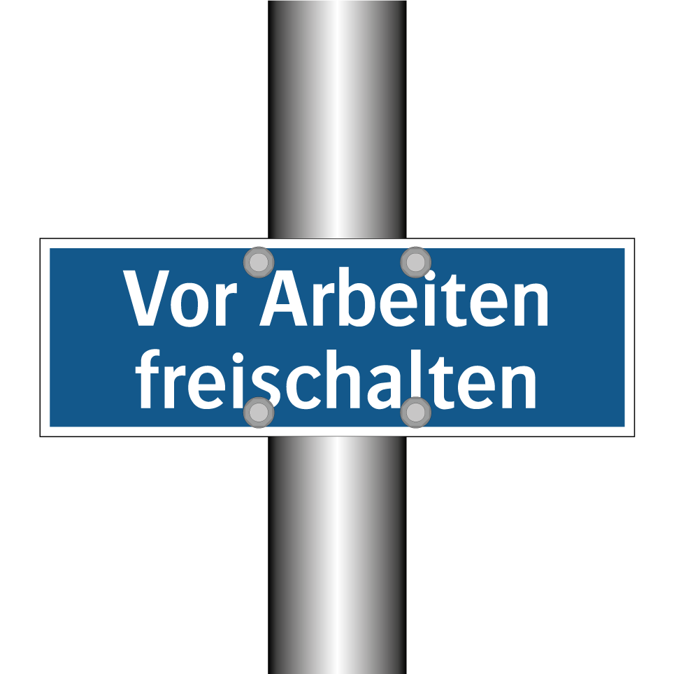 Gebotsschild mit dem Text Vor Arbeiten freischalten