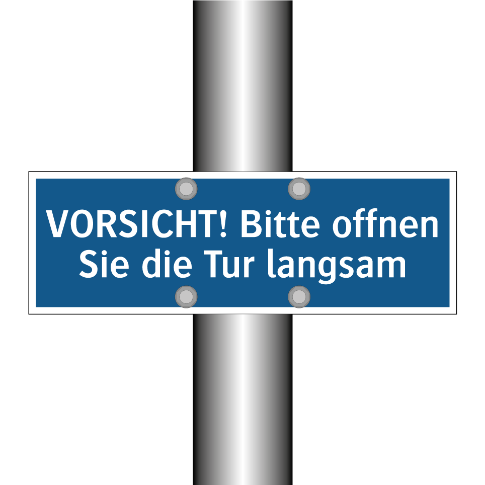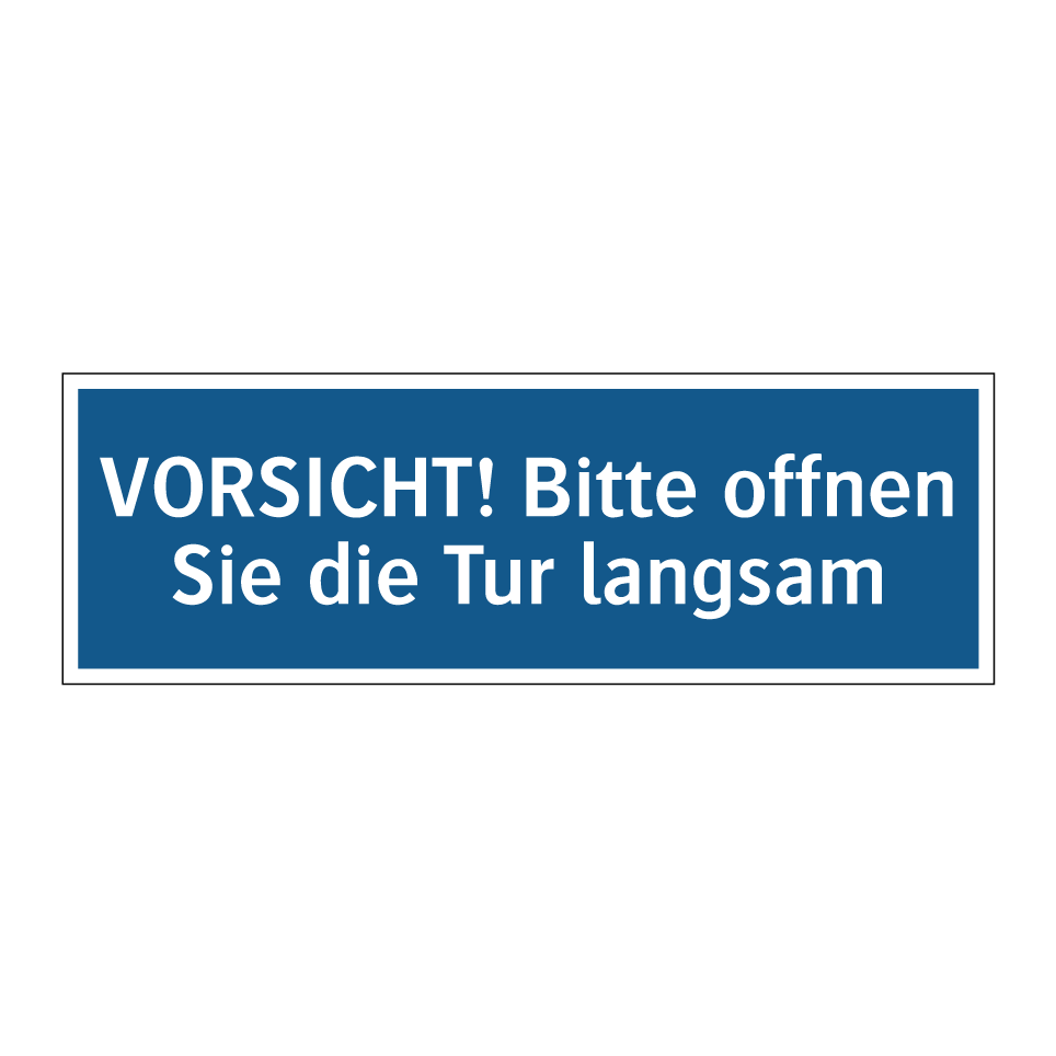 Gebotsschild mit dem Text VORSICHT! Bitte offnen Sie die Tur langsam