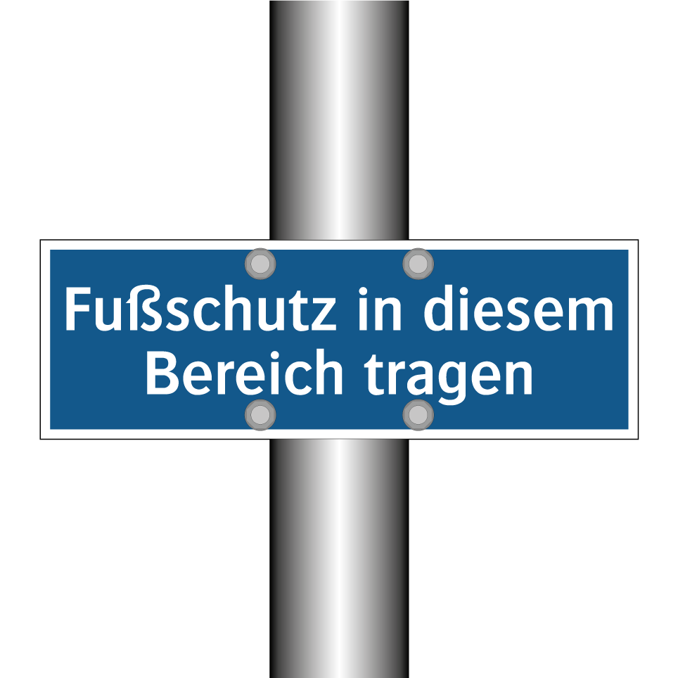 Gebotsschild mit dem Text Fußschutz in diesem Bereich tragen
