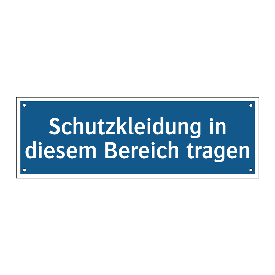 Gebotsschild mit dem Text Schutzkleidung in diesem Bereich tragen
