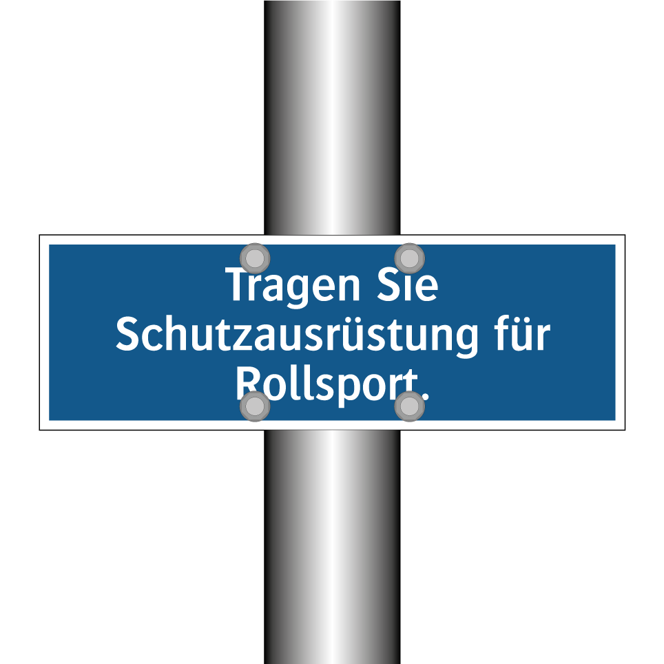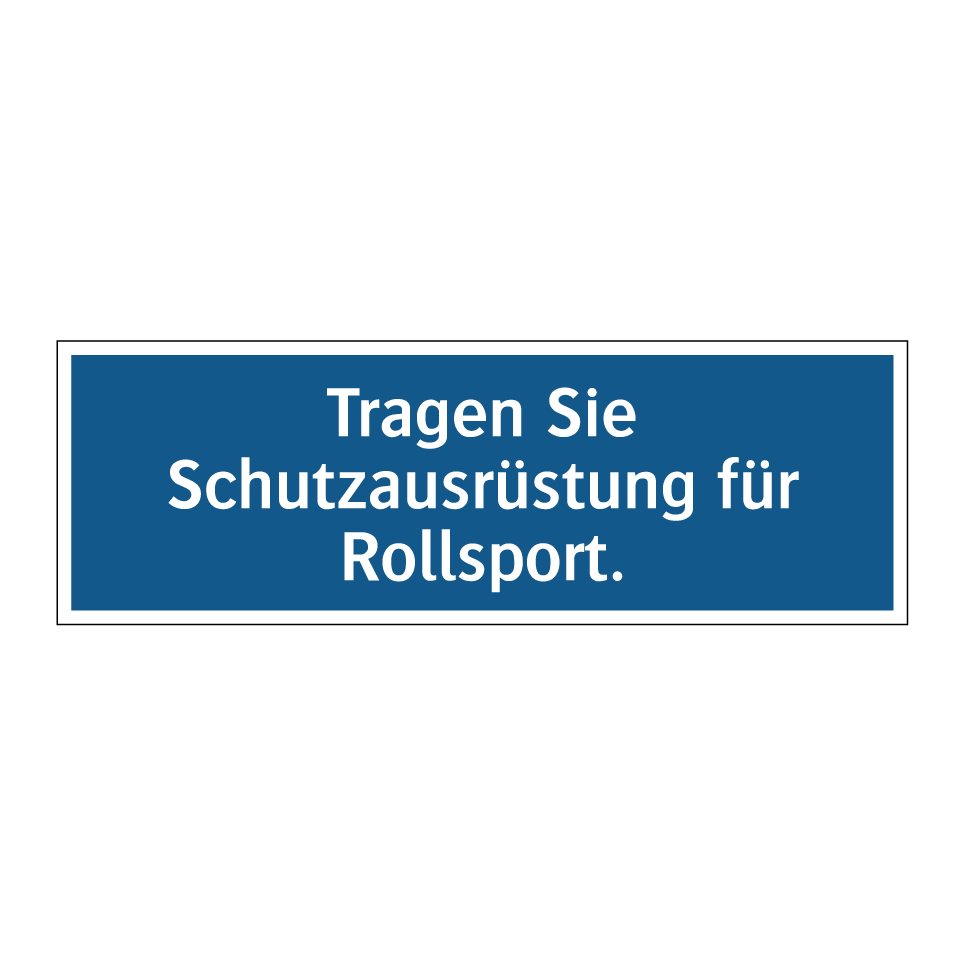 Diese Gebotsschild ist ein unverzichtbares Element für alle Bereiche, in denen Rollsport betrieben wird. Sie erinnert daran, dass das Tragen von Schutzausrüstung unerlässlich ist, um die Sicherheit der Sportler zu gewährleisten. Ideal für Skateparks, Rollschuhbahnen oder andere Sporteinrichtungen, wo das Risiko von Verletzungen besteht. Diese Sicherheitsanweisung kann an Eingängen, Umkleideräumen oder direkt an der Sportfläche angebracht werden, um sicherzustellen, dass alle Teilnehmer die notwendigen Schutzmaßnahmen ergreifen. Durch die klare blaue Hintergrundfarbe und die weiße Schrift ist die Botschaft leicht erkennbar und verständlich.