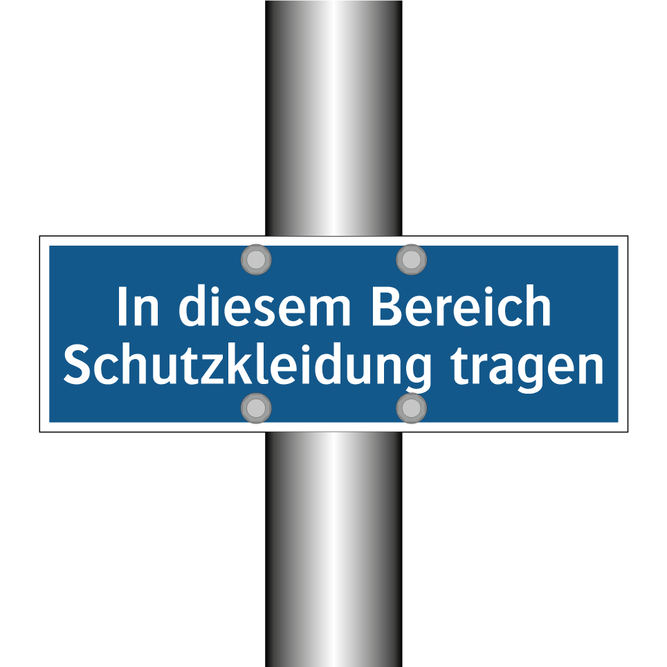Gebotsschild mit dem Text In diesem Bereich Schutzkleidung tragen