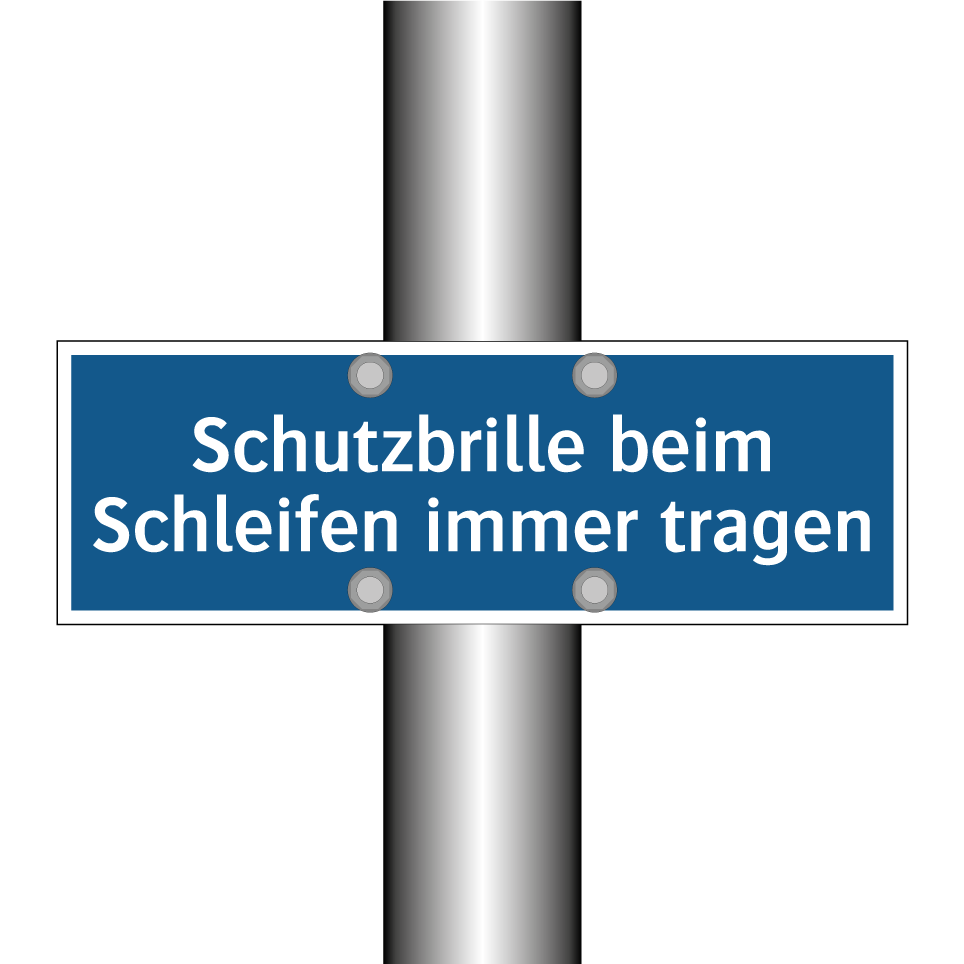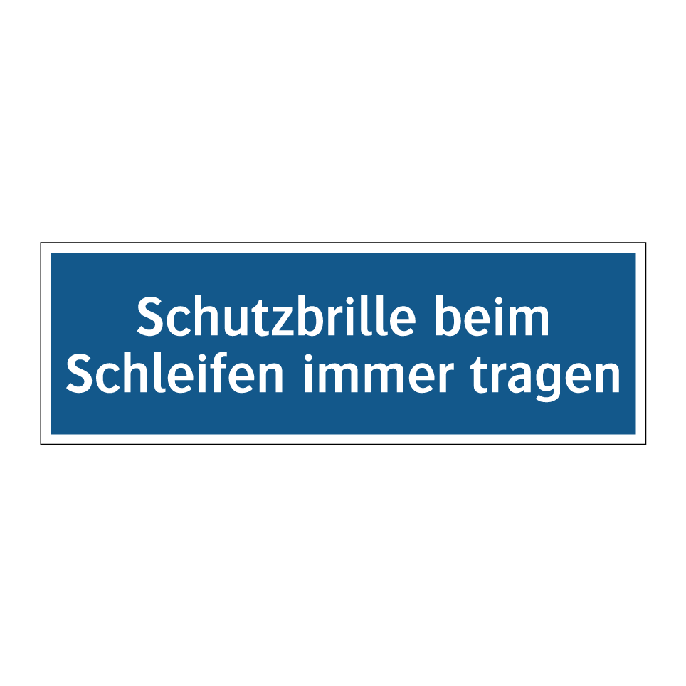 Diese Gebotsschild ist ein unverzichtbares Element in jeder Werkstatt oder Produktionsumgebung, in der Schleifarbeiten durchgeführt werden. Sie erinnert Mitarbeiter daran, stets eine Schutzbrille zu tragen, um ihre Augen vor Funken und Staub zu schützen. Diese Sicherheitsmaßnahme ist besonders wichtig in Bereichen, in denen Metall oder andere harte Materialien bearbeitet werden. Die Gebotsschild kann strategisch an Eingängen zu Arbeitsbereichen, in der Nähe von Schleifmaschinen oder an anderen gut sichtbaren Stellen angebracht werden, um die Sicherheit zu maximieren. Durch die klare blaue Hintergrundfarbe und die auffällige weiße Schrift wird die Botschaft effektiv kommuniziert und trägt zur Einhaltung der Sicherheitsvorschriften bei.