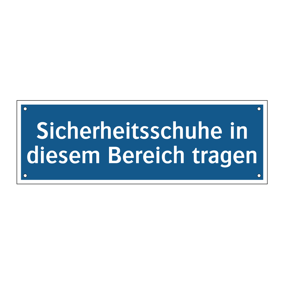 Gebotsschild mit dem Text Sicherheitsschuhe in diesem Bereich tragen