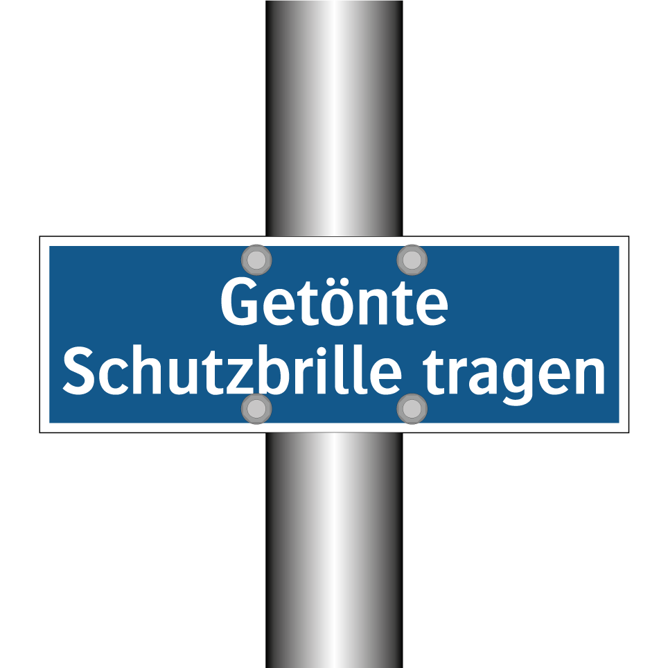 Gebotsschild mit dem Text Getönte Schutzbrille tragen