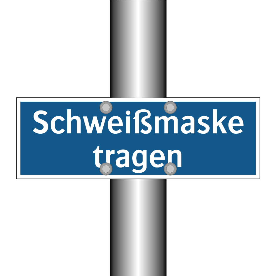 Diese Gebotsschild ist ein unverzichtbares Element in jeder Arbeitsumgebung, in der Schweißarbeiten durchgeführt werden. Mit ihrer klaren blauen Hintergrundfarbe und der auffälligen weißen Schrift erinnert sie Mitarbeiter daran, stets eine Schweißmaske zu tragen, um ihre Sicherheit zu gewährleisten. Diese Sicherheitsmaßnahme ist besonders wichtig in Werkstätten, Fabriken und Baustellen, wo das Risiko von Funken und schädlichen Dämpfen besteht. Die Platzierung dieser Gebotsschild an gut sichtbaren Stellen, wie Eingängen zu Schweißbereichen oder direkt an Arbeitsstationen, sorgt dafür, dass die Sicherheitsvorschriften eingehalten werden. Sie dient als ständige Erinnerung an die Notwendigkeit des Tragens von Schutzmasken und fördert so eine sichere Arbeitsumgebung.