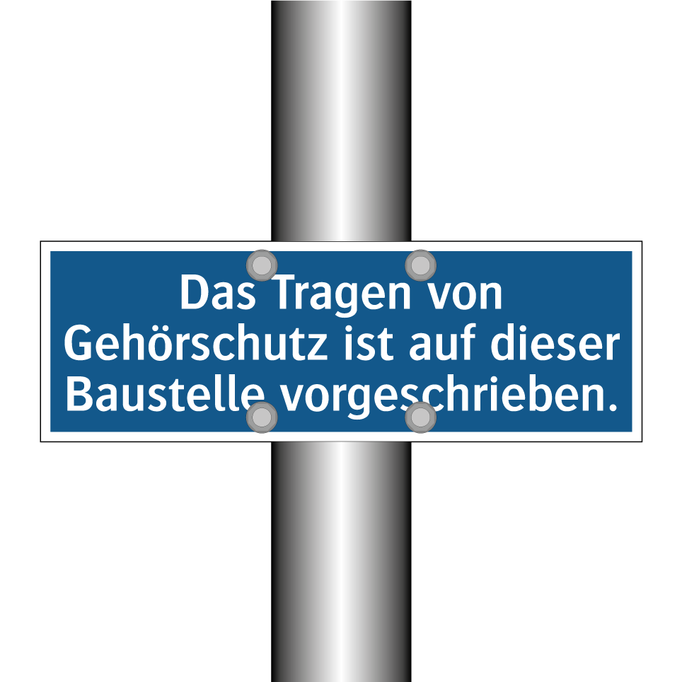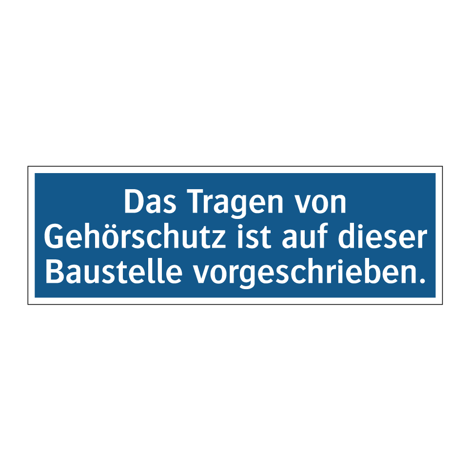 Gebotsschild mit dem Text Das Tragen von Gehörschutz ist auf dieser Baustelle vorgeschrieben.