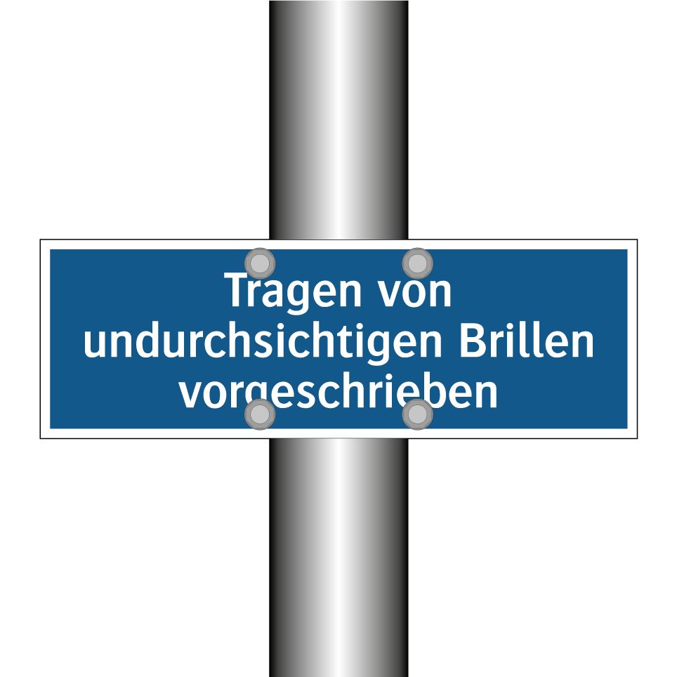 Gebotsschild mit dem Text Tragen von undurchsichtigen Brillen vorgeschrieben