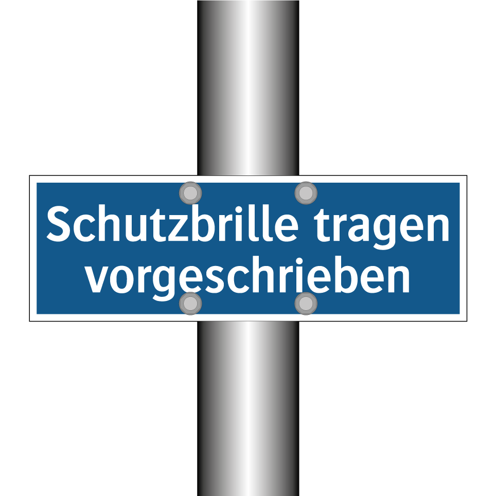 Gebotsschild mit dem Text Schutzbrille tragen vorgeschrieben