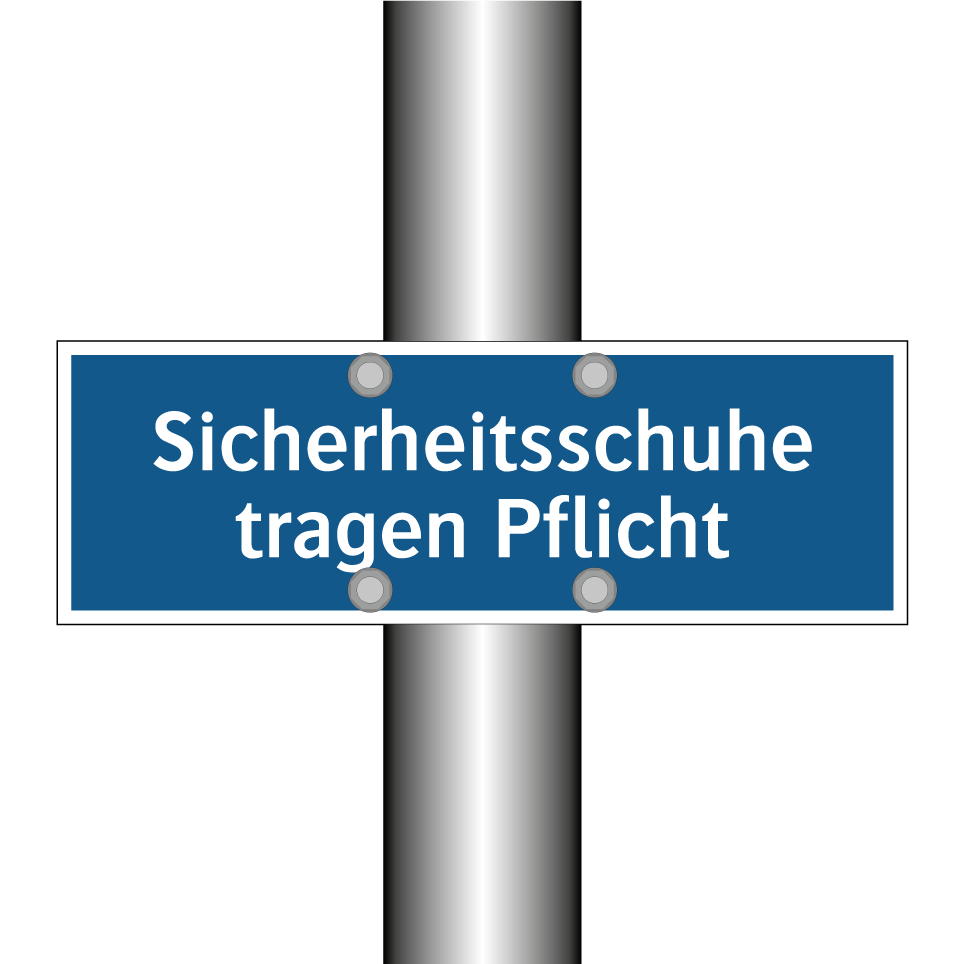 Gebotsschild mit dem Text Sicherheitsschuhe tragen Pflicht