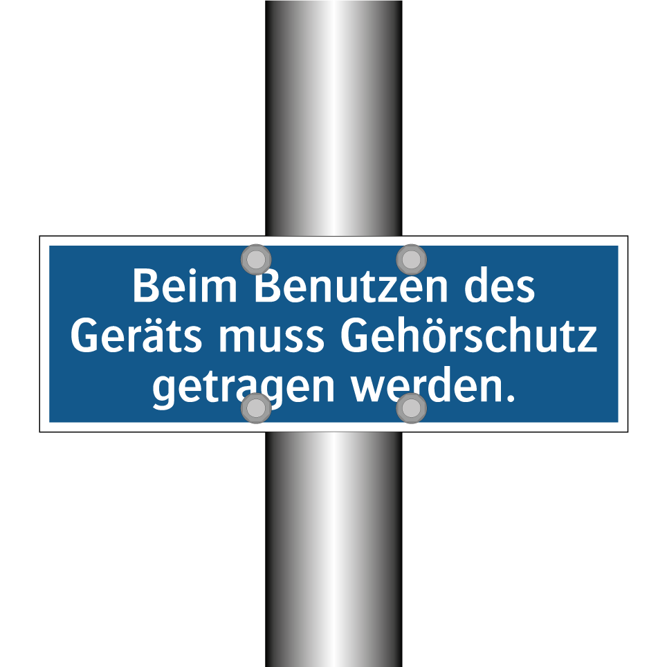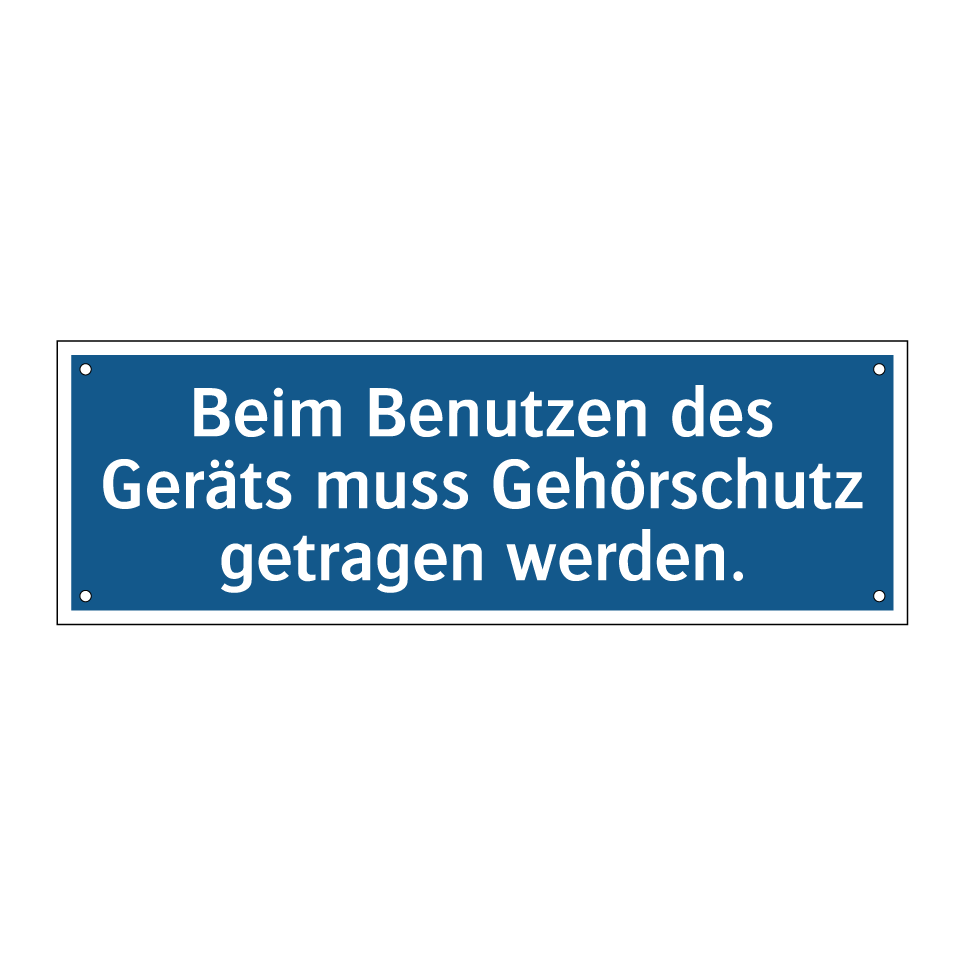 Gebotsschild mit dem Text Beim Benutzen des Geräts muss Gehörschutz getragen werden.