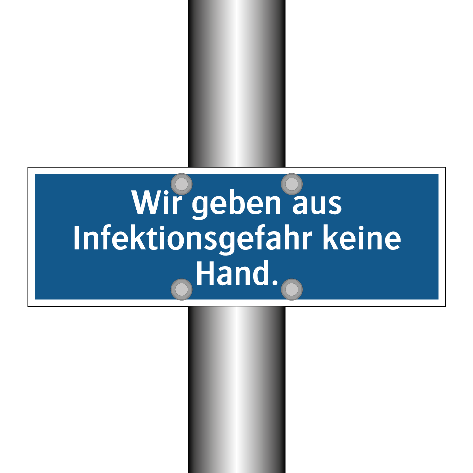 Gebotsschild mit dem Text Wir geben aus Infektionsgefahr keine Hand.