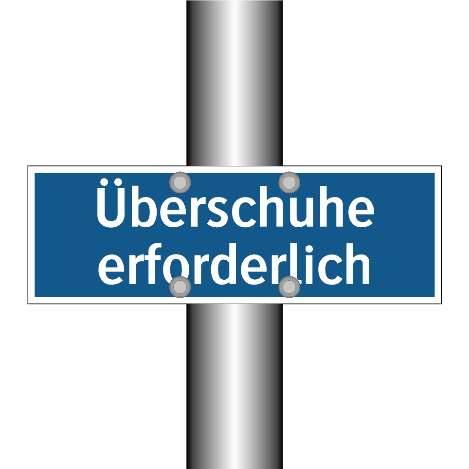 Gebotsschild mit dem Text Überschuhe erforderlich