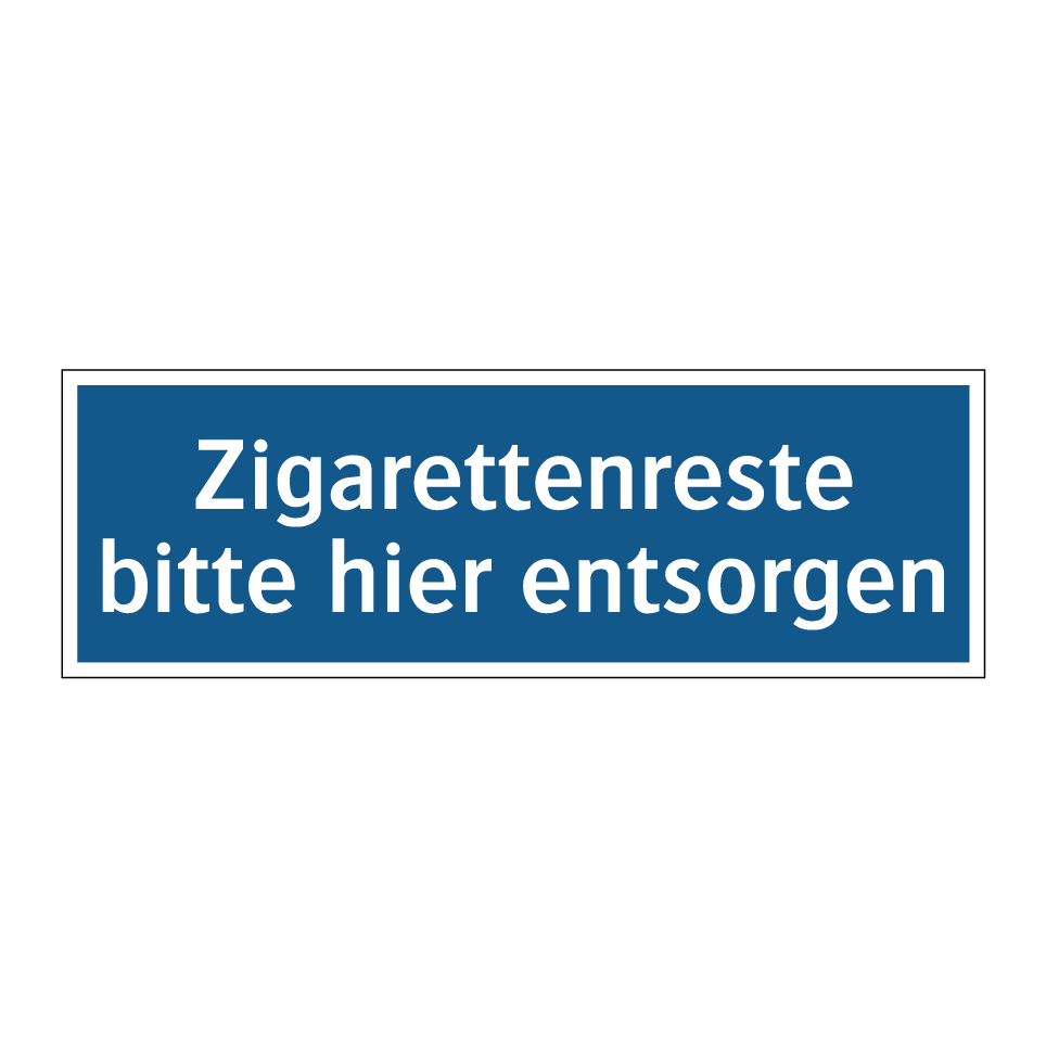 Diese Gebotsschild ist ideal für Bereiche, in denen Sauberkeit und Ordnung wichtig sind. Sie eignet sich hervorragend für Raucherzonen, Eingangsbereiche von Gebäuden oder öffentliche Plätze, um sicherzustellen, dass Zigarettenreste ordnungsgemäß entsorgt werden. Durch die klare Anweisung auf der blauen Hintergrundfläche wird die Aufmerksamkeit der Passanten effektiv gelenkt. Diese Gebotsschilder tragen dazu bei, die Umwelt sauber zu halten und das Erscheinungsbild von Gemeinschaftsbereichen zu verbessern. Platzieren Sie sie an strategischen Orten, um die Einhaltung der Entsorgungsrichtlinien zu fördern und die Umgebung frei von Zigarettenabfällen zu halten.