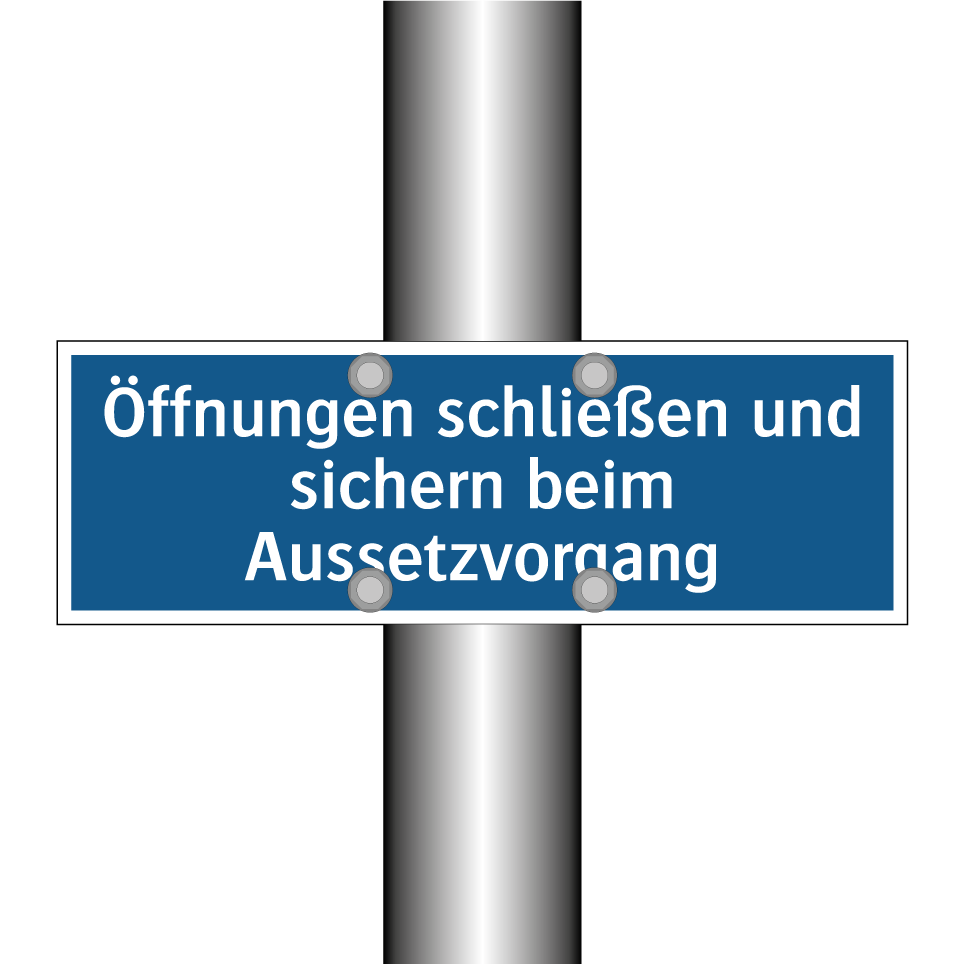 Gebotsschild mit dem Text Öffnungen schließen und sichern beim Aussetzvorgang