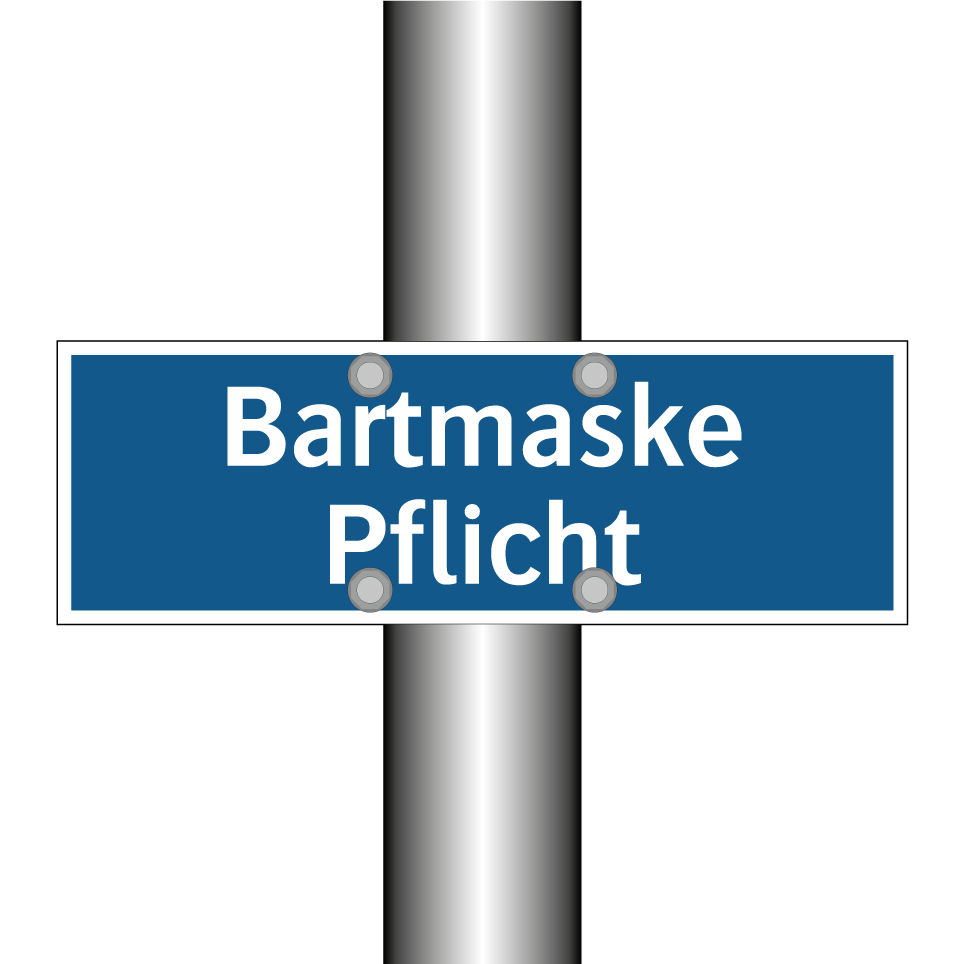 Gebotsschild mit dem Text Bartmaske Pflicht