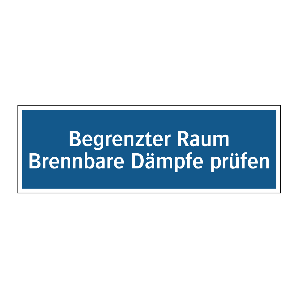 Gebotsschild mit dem Text Begrenzter Raum Brennbare Dämpfe prüfen
