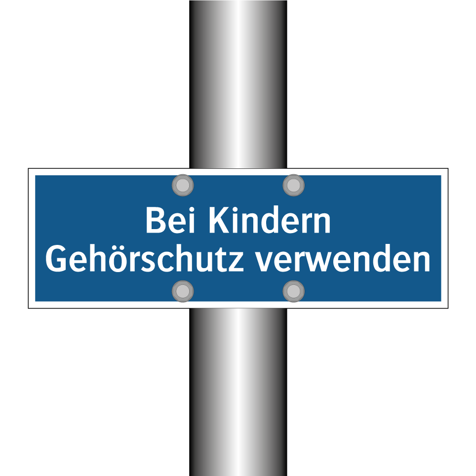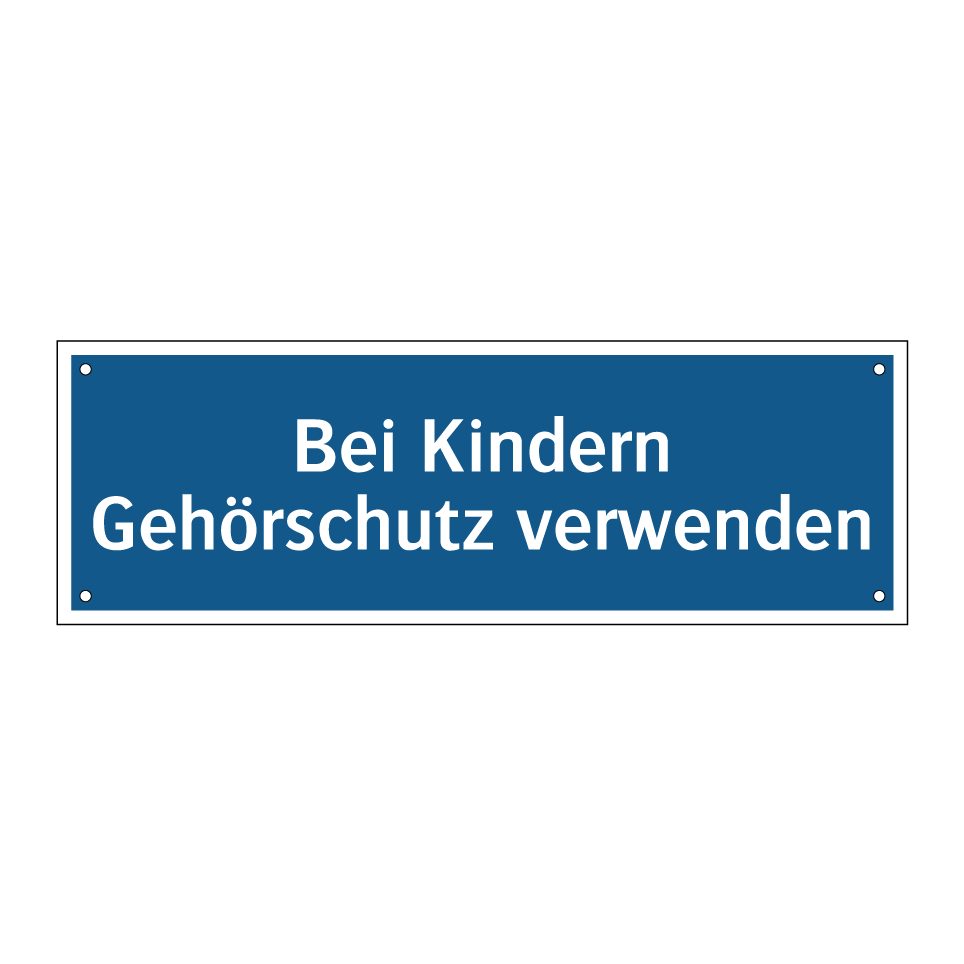 Gebotsschild mit dem Text Bei Kindern Gehörschutz verwenden