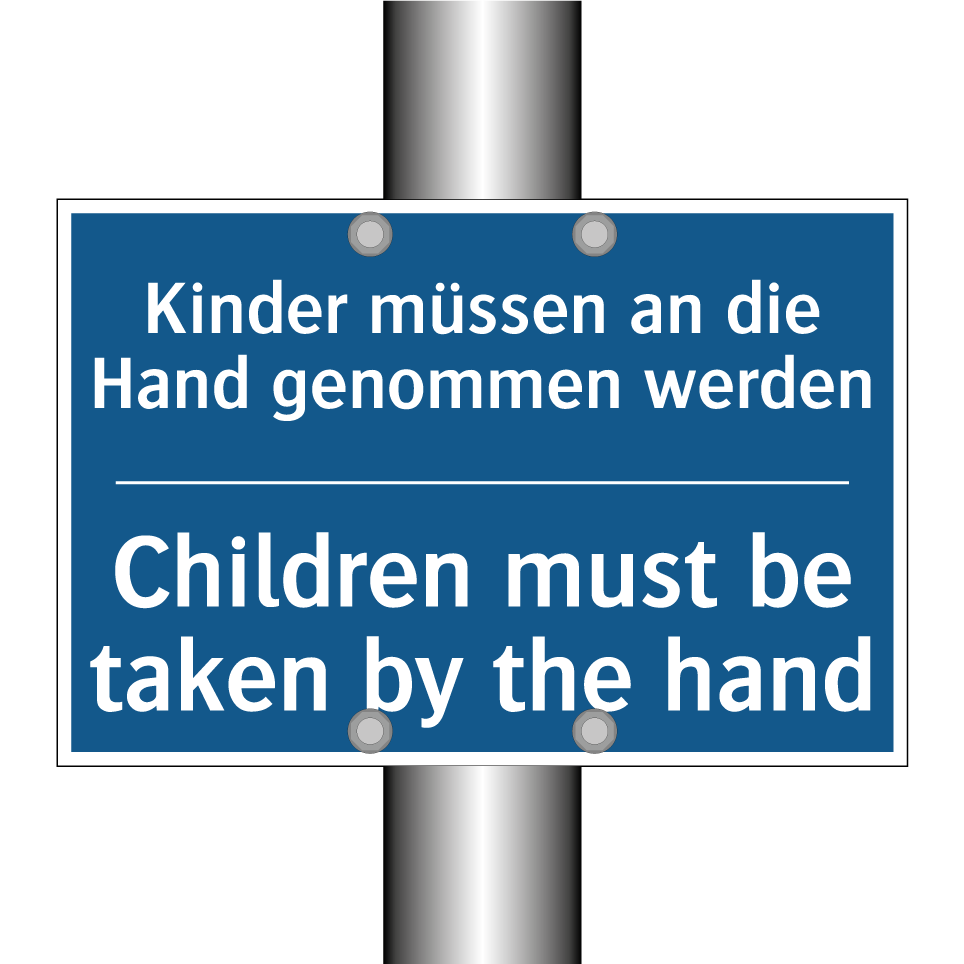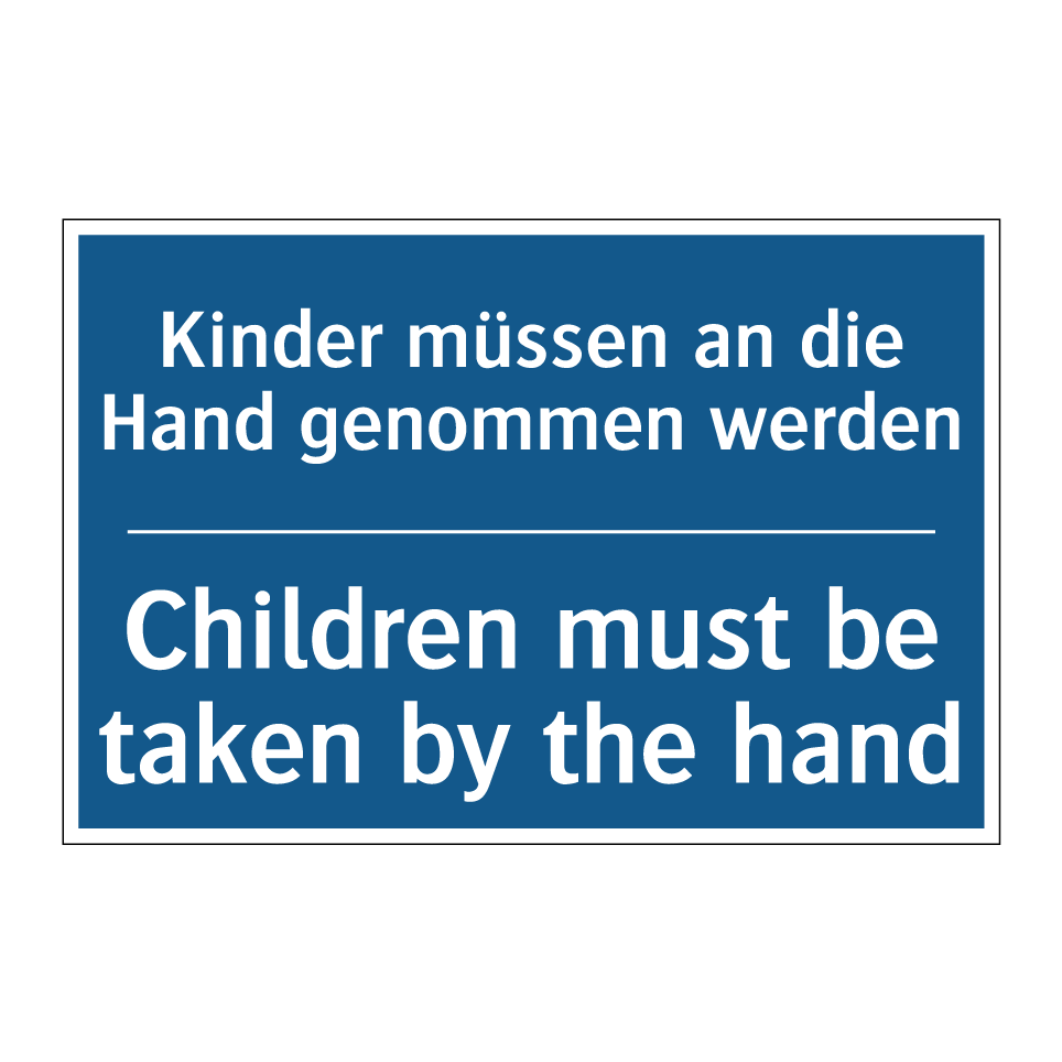 Diese Gebotsschild mit blauem Hintergrund und weißer Schrift ist ideal für Orte, an denen die Sicherheit von Kindern oberste Priorität hat. Die zweisprachige Beschriftung auf Deutsch und Englisch sorgt dafür, dass die Botschaft von einem breiten Publikum verstanden wird, was besonders in internationalen Umgebungen von Vorteil ist. Diese Schild eignet sich hervorragend für den Einsatz in Bereichen wie Kindergärten, Schulen, Spielplätzen und Freizeitparks. Es erinnert Erwachsene daran, Kinder stets an der Hand zu führen, um ihre Sicherheit zu gewährleisten. Die klare und deutliche Anweisung hilft, Unfälle zu vermeiden und eine sichere Umgebung für die Kleinen zu schaffen.