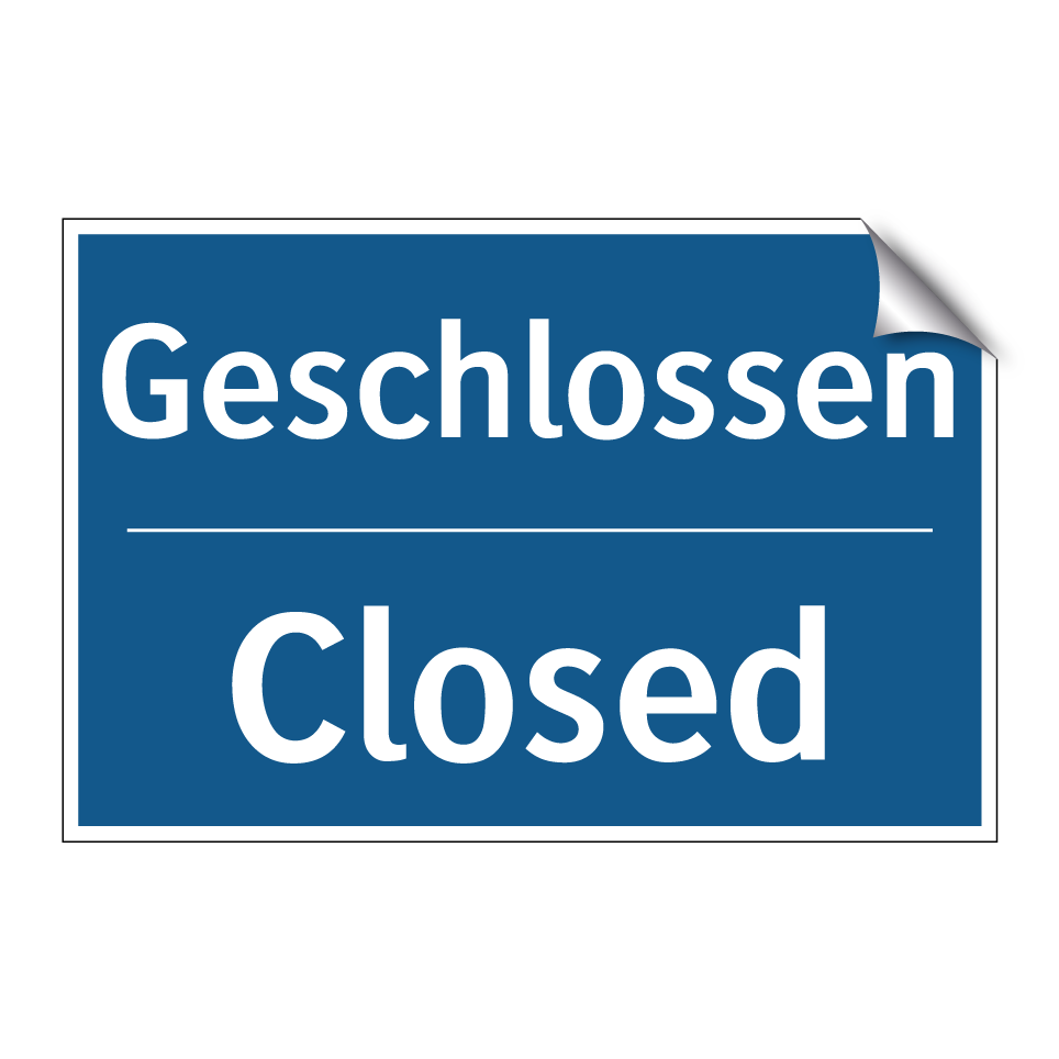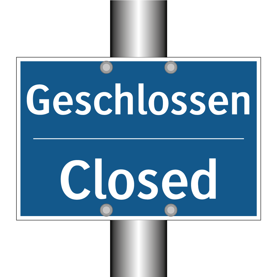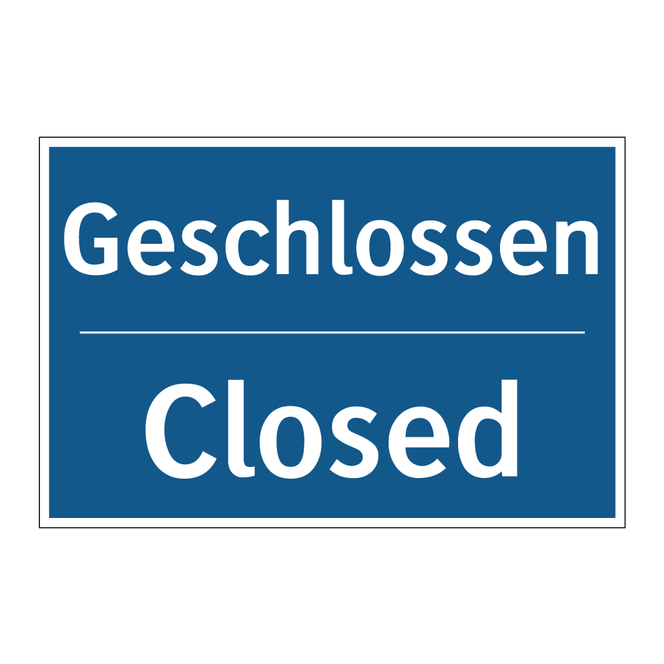 Zweisprachiges Verbotsschild mit deutschem Text Geschlossen und englischem Text Closed
