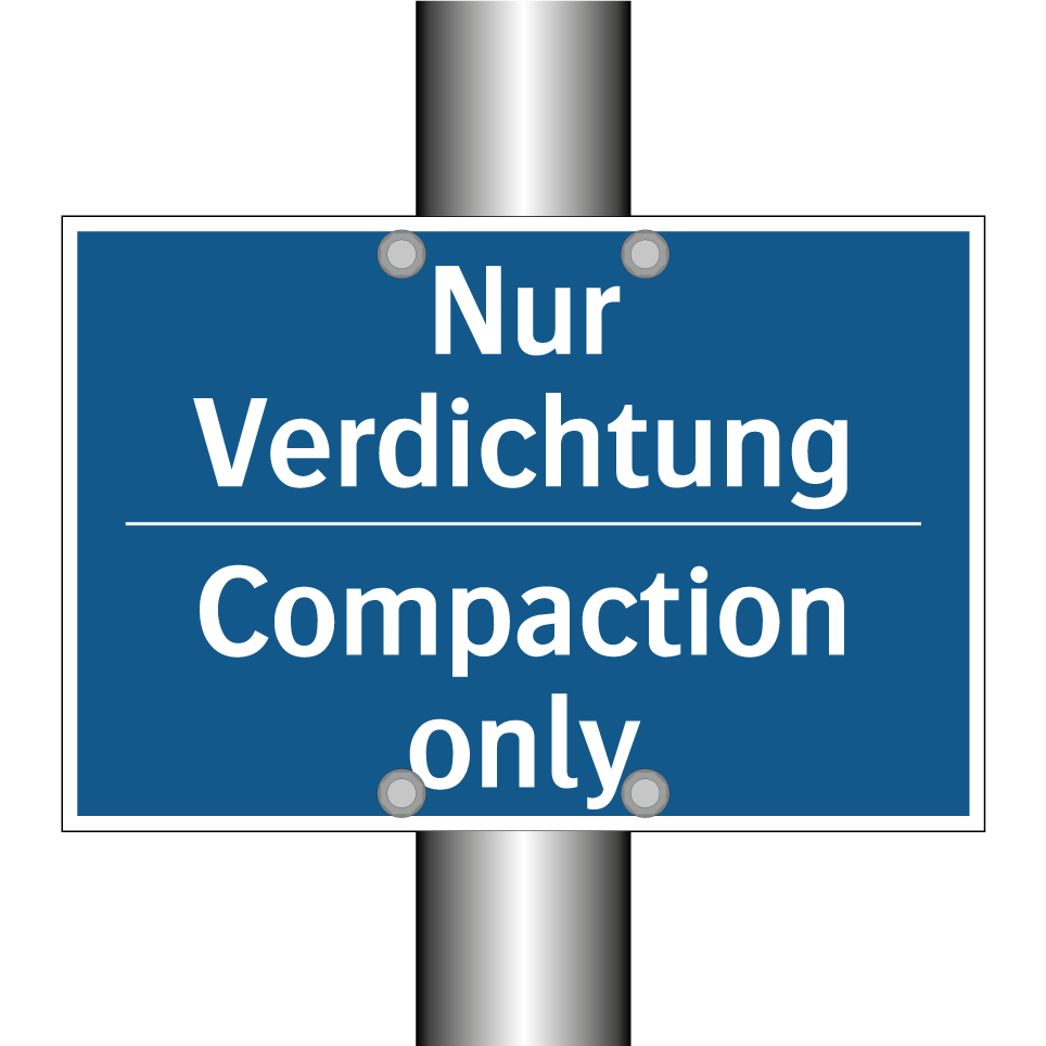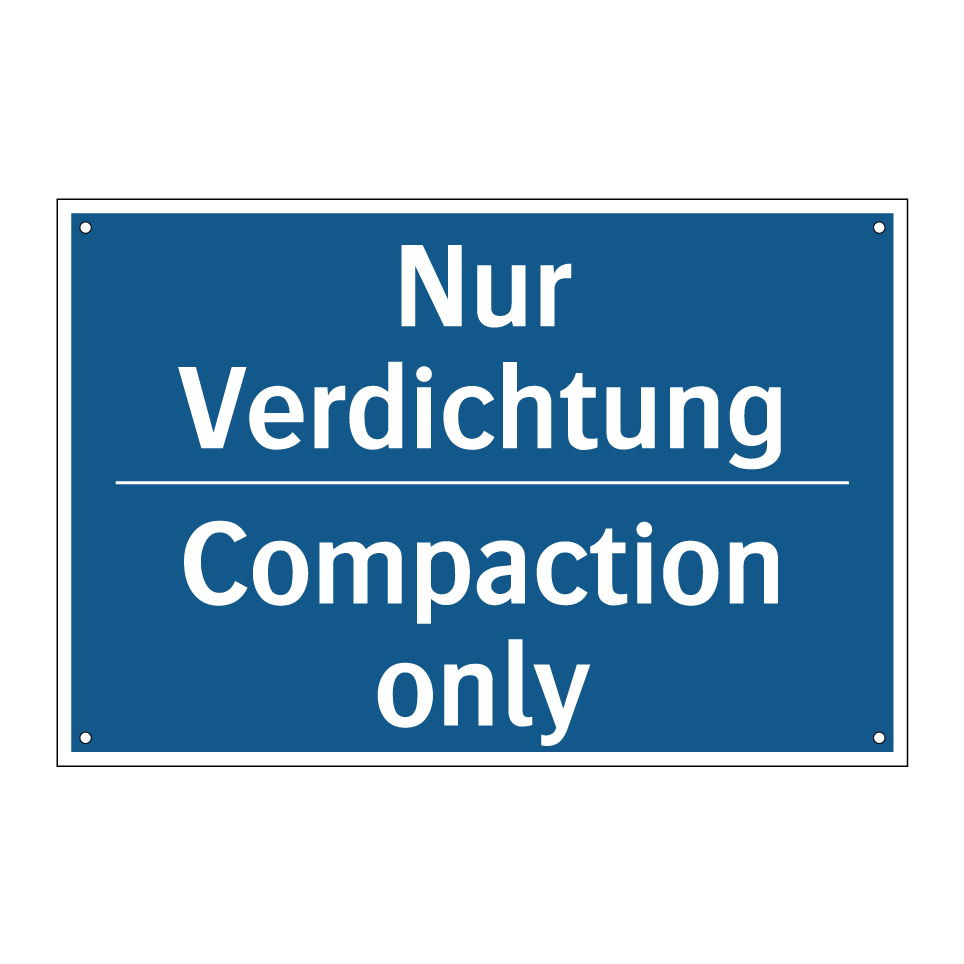 Zweisprachiges Verbotsschild mit deutschem Text Nur Verdichtung und englischem Text Compaction only