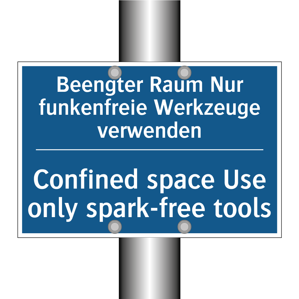 Entdecken Sie die Vielseitigkeit dieser Gebotsschild, die speziell für den Einsatz in beengten Räumen entwickelt wurde. Mit ihrer zweisprachigen Beschriftung auf Deutsch und Englisch gewährleistet sie klare Kommunikation und Sicherheit in internationalen Arbeitsumgebungen. Diese Gebotsschild ist ideal für industrielle Bereiche, in denen nur funkenfreie Werkzeuge verwendet werden dürfen, um das Risiko von Explosionen oder Bränden zu minimieren. Platzieren Sie sie an Eingängen zu engen Räumen, in Werkstätten oder an anderen relevanten Orten, um sicherzustellen, dass alle Mitarbeiter und Besucher die Sicherheitsvorschriften einhalten. Die klare blaue Hintergrundfarbe und der weiße Text sorgen für maximale Sichtbarkeit und Verständlichkeit.