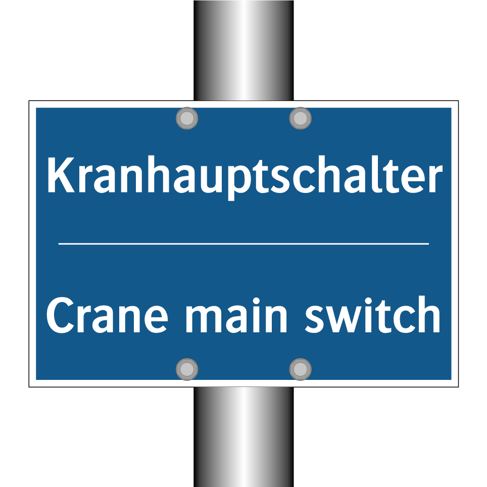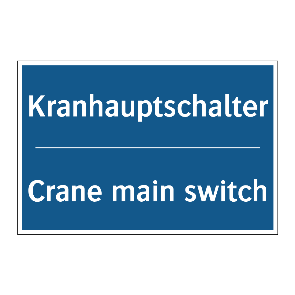 Entdecken Sie die Vielseitigkeit dieser Gebotsschild mit blauer Hintergrundfarbe und weißer Schrift. Diese zweisprachige Beschilderung, die sowohl auf Deutsch als auch auf Englisch verfasst ist, sorgt für klare Kommunikation in internationalen Umgebungen. Ideal für den Einsatz in industriellen Bereichen, weist sie auf den Hauptschalter des Krans hin und gewährleistet so die Sicherheit und den reibungslosen Betrieb. Platzieren Sie diese Gebotsschild in der Nähe von Kransteuerungen oder in Bereichen, in denen der Zugang zum Hauptschalter erforderlich ist. Die zweisprachige Beschriftung erleichtert das Verständnis für Mitarbeiter und Besucher aus verschiedenen Sprachräumen und fördert die Einhaltung von Sicherheitsvorschriften.