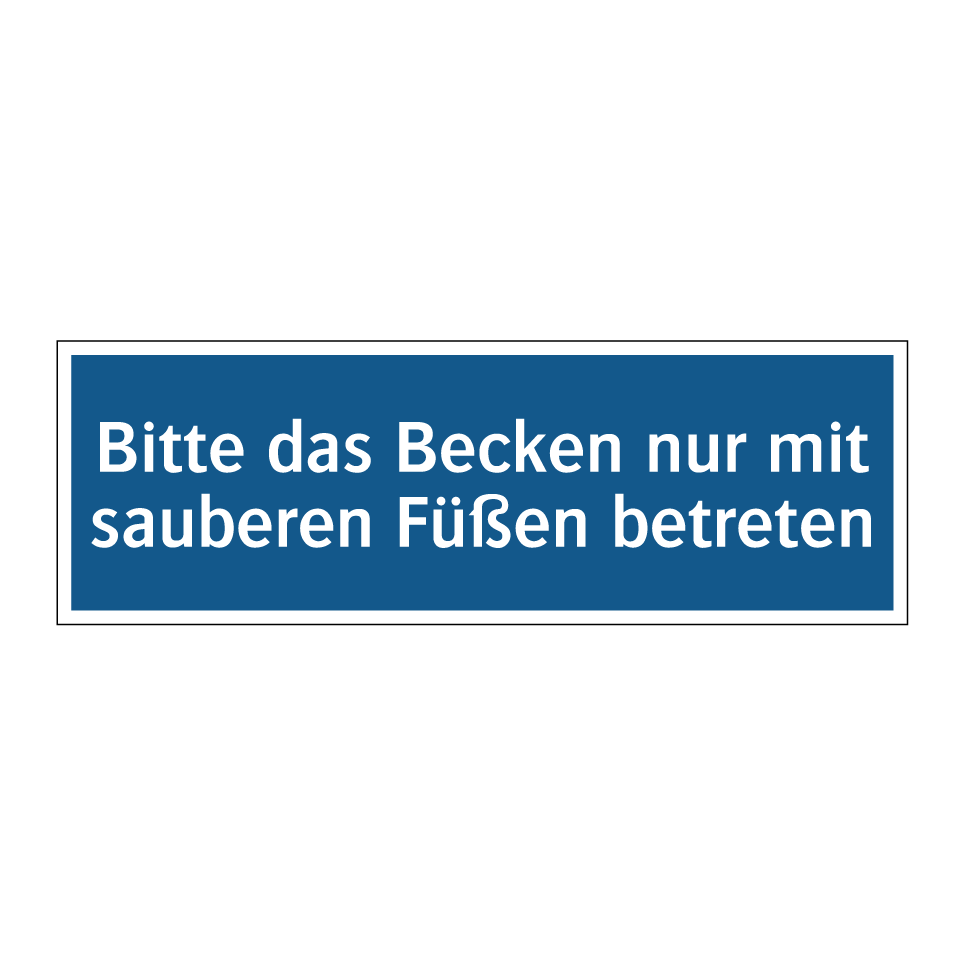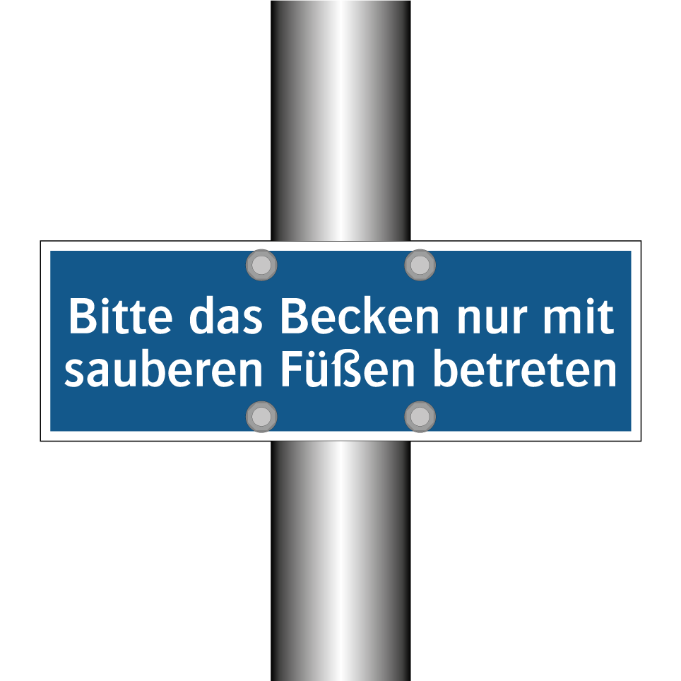 Gebotsschild mit dem Text Bitte das Becken nur mit sauberen Füßen betreten