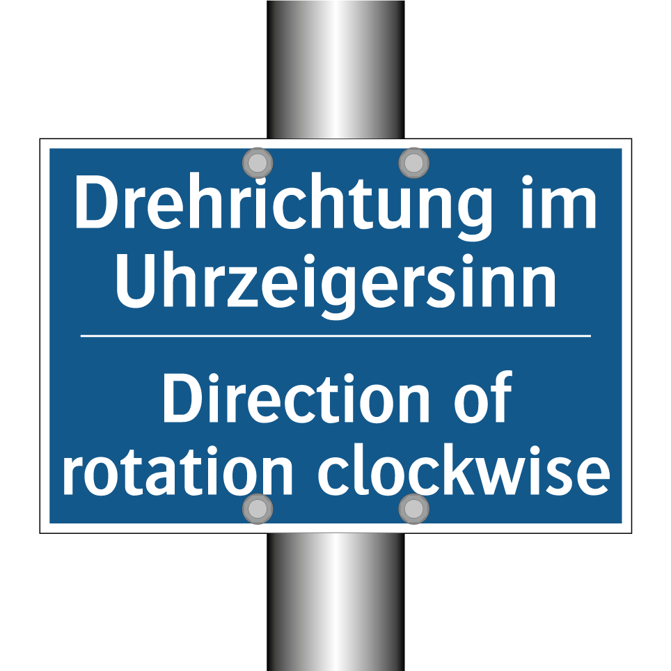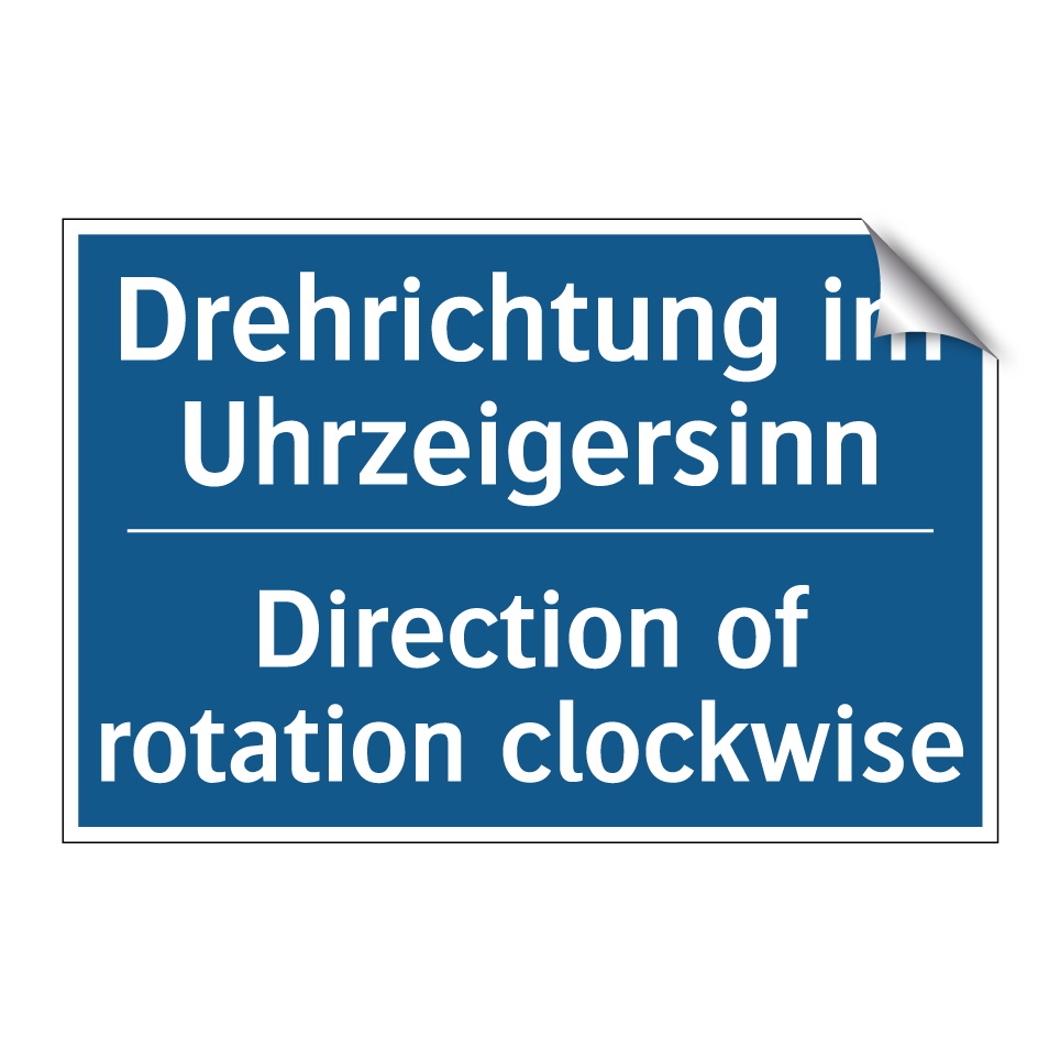 Zweisprachiges Verbotsschild mit deutschem Text Drehrichtung im Uhrzeigersinn und englischem Text Direction of rotation clockwise
