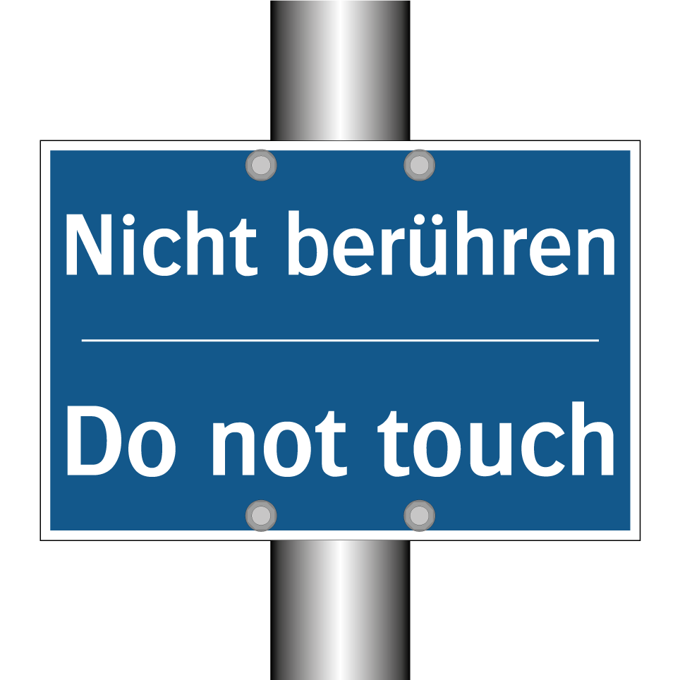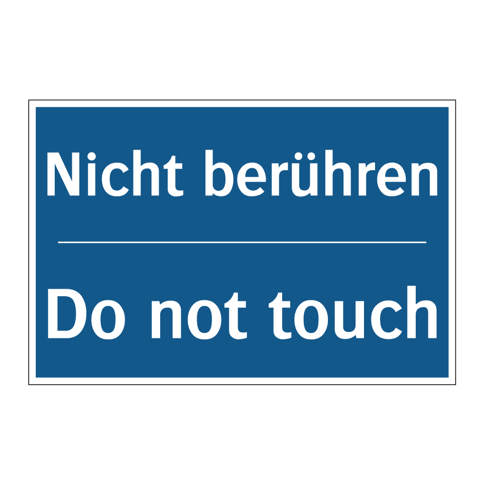Zweisprachiges Verbotsschild mit deutschem Text Nicht berühren und englischem Text Do not touch