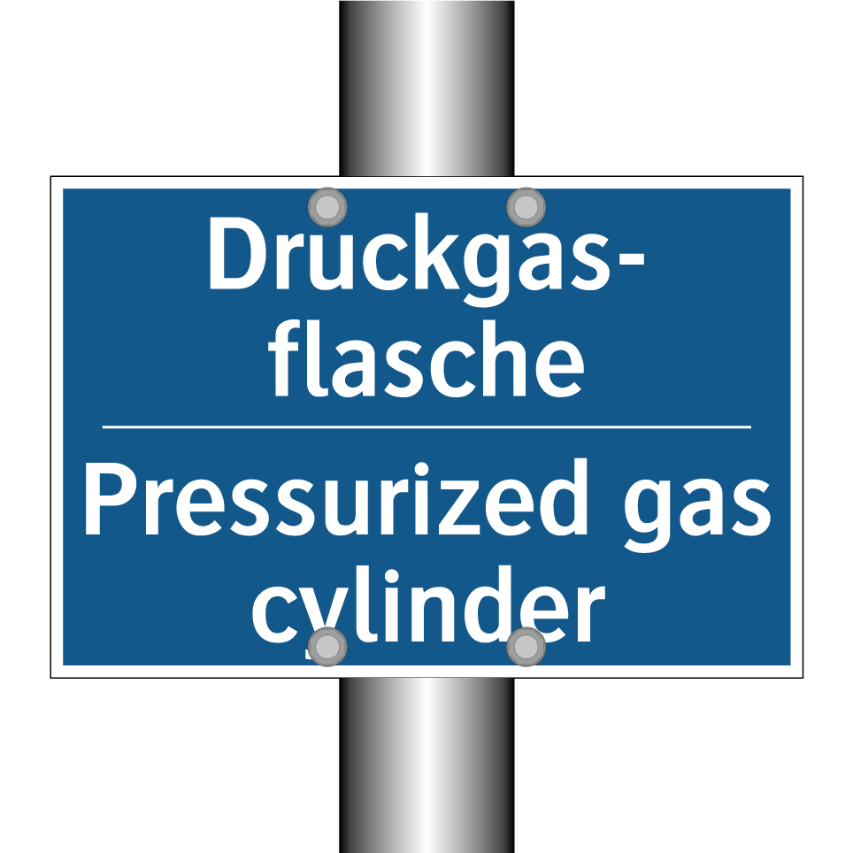 Zweisprachiges Verbotsschild mit deutschem Text Druckgas- flasche und englischem Text Pressurized gas cylinder