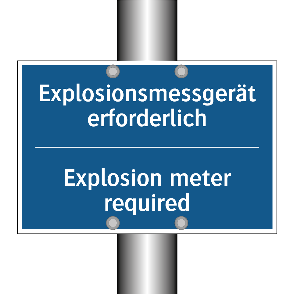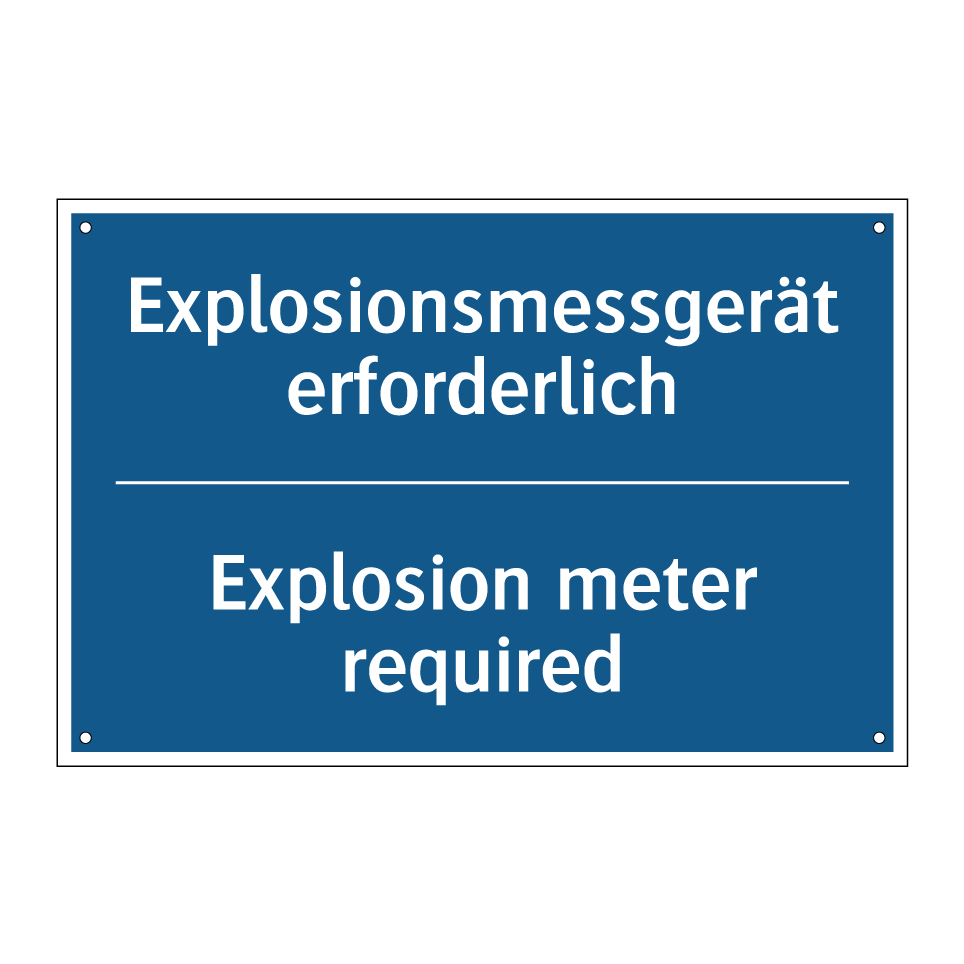Zweisprachiges Verbotsschild mit deutschem Text Explosionsmessgerät erforderlich und englischem Text Explosion meter required