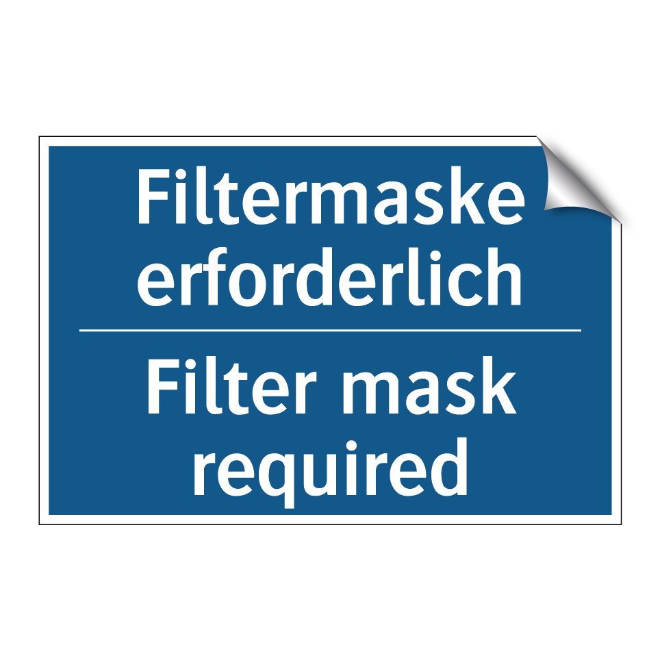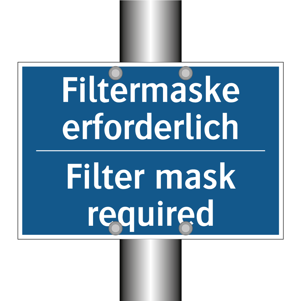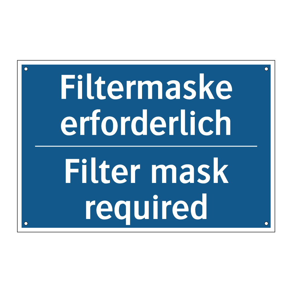Zweisprachiges Verbotsschild mit deutschem Text Filtermaske erforderlich und englischem Text Filter mask required