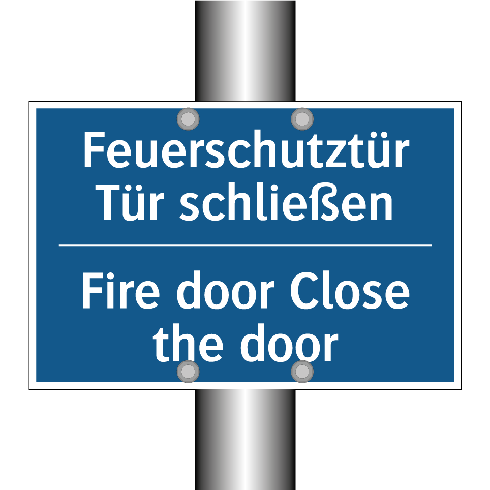 Entdecken Sie die vielseitige Anwendung dieser Gebotsschild, die sowohl auf Deutsch als auch auf Englisch beschriftet ist. Diese zweisprachige Beschilderung ist ideal für internationale Umgebungen, in denen klare Anweisungen erforderlich sind. Sie dient dazu, sicherzustellen, dass Brandschutztüren stets geschlossen bleiben, um die Sicherheit in Gebäuden zu gewährleisten. Platzieren Sie diese Gebotsschild in der Nähe von Brandschutztüren in Büros, öffentlichen Gebäuden oder Industrieanlagen, um die Einhaltung von Sicherheitsvorschriften zu fördern. Die klare, blaue Hintergrundfarbe mit weißer Schrift sorgt dafür, dass die Anweisung sofort ins Auge fällt und leicht verständlich ist. Nutzen Sie die Vorteile der zweisprachigen Beschriftung, um ein breiteres Publikum zu erreichen und die Sicherheit zu maximieren.