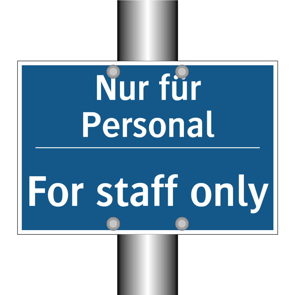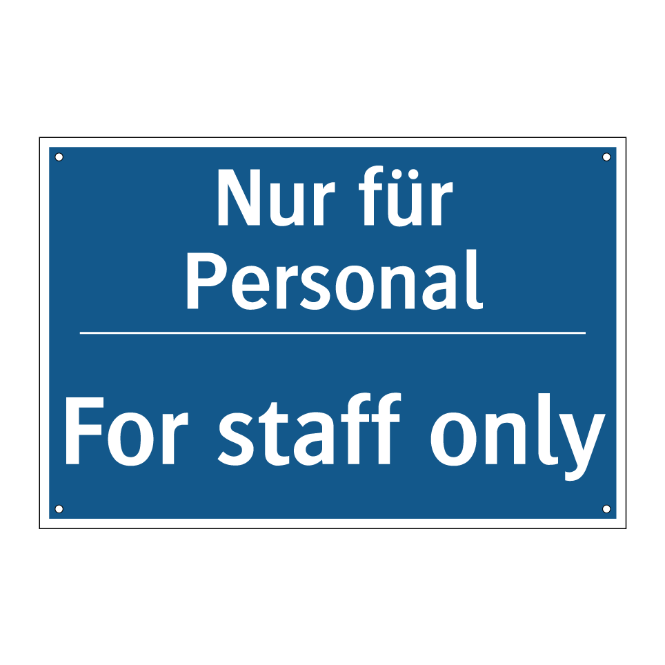Zweisprachiges Verbotsschild mit deutschem Text Nur für Personal und englischem Text For staff only