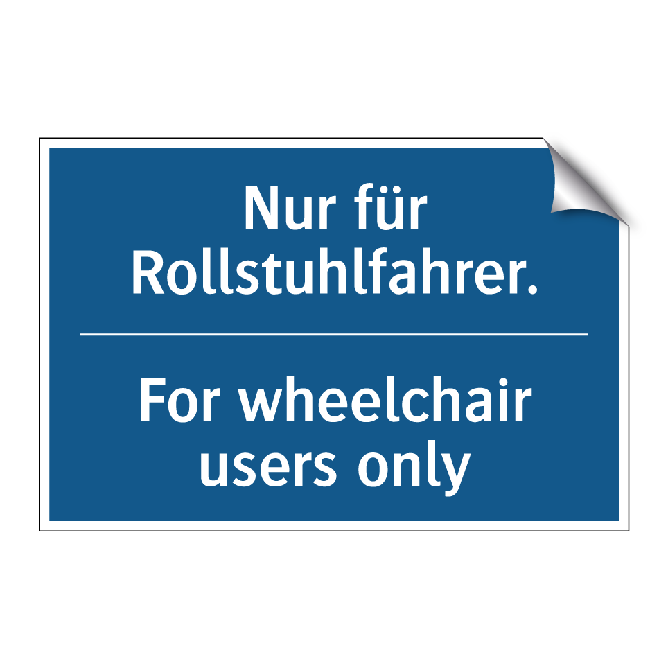 Zweisprachiges Verbotsschild mit deutschem Text Nur für Rollstuhlfahrer. und englischem Text For wheelchair users only