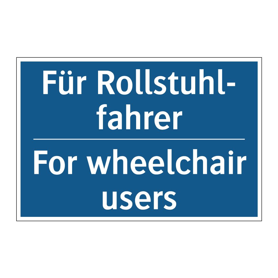 Zweisprachiges Verbotsschild mit deutschem Text Für Rollstuhl- fahrer und englischem Text For wheelchair users