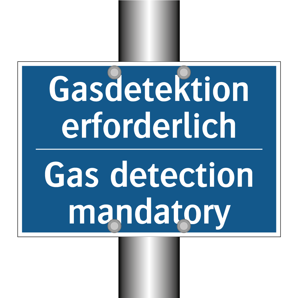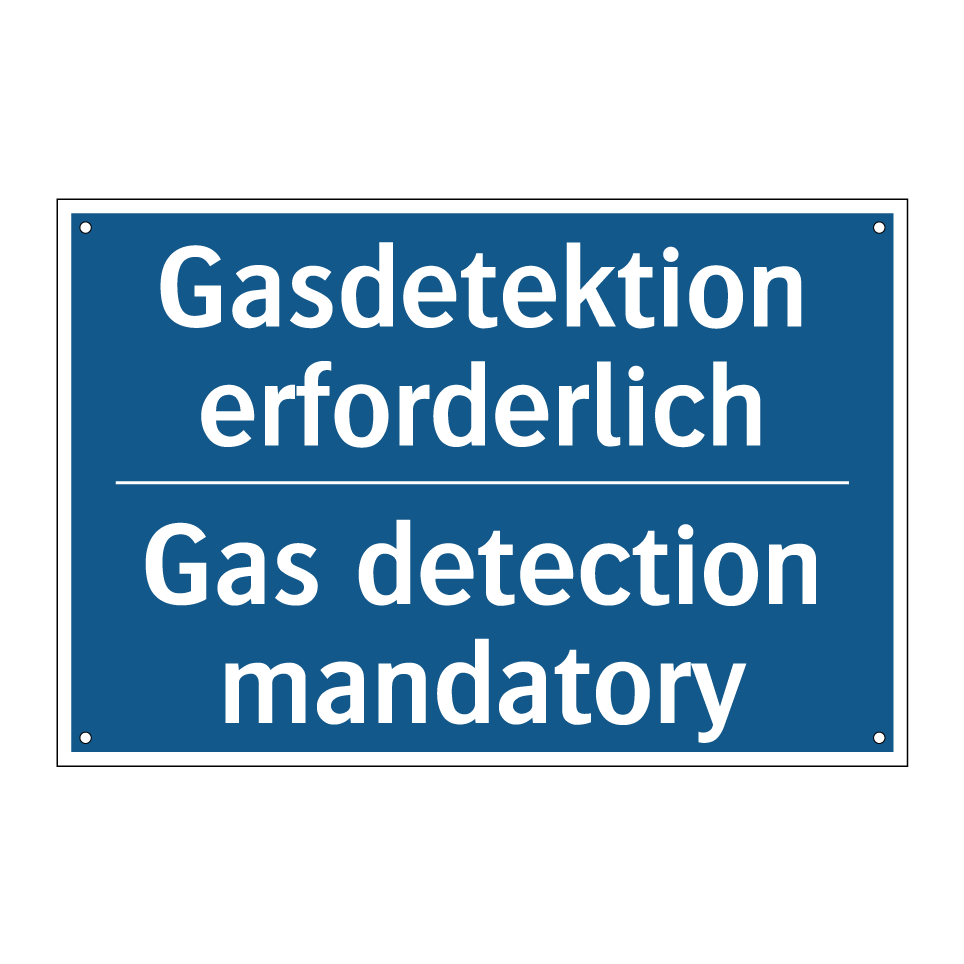 Zweisprachiges Verbotsschild mit deutschem Text Gasdetektion erforderlich und englischem Text Gas detection mandatory