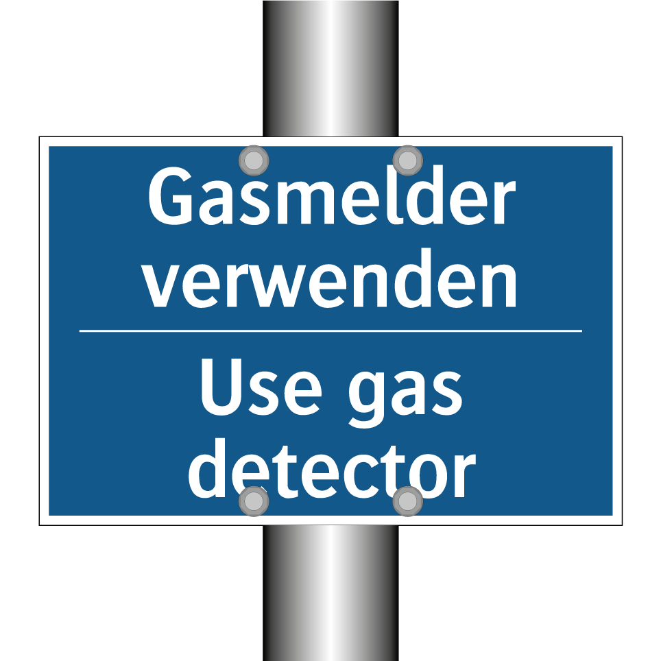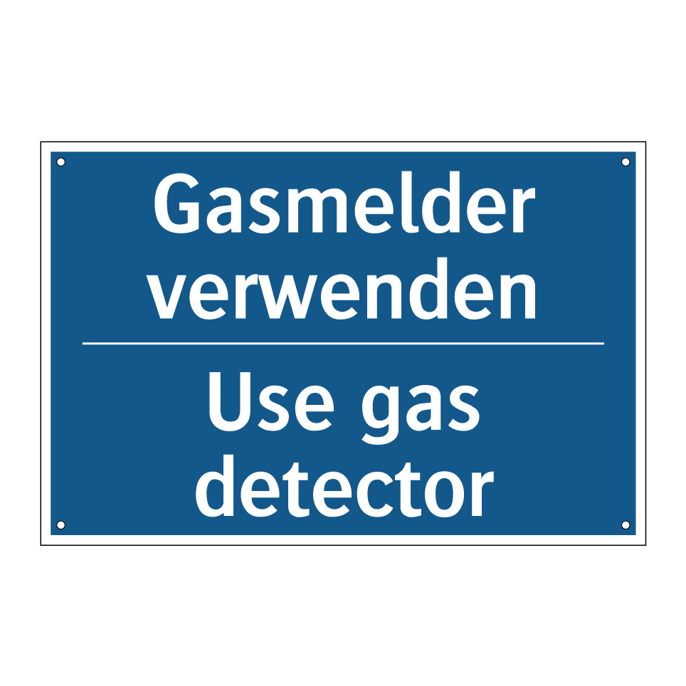 Zweisprachiges Verbotsschild mit deutschem Text Gasmelder verwenden und englischem Text Use gas detector