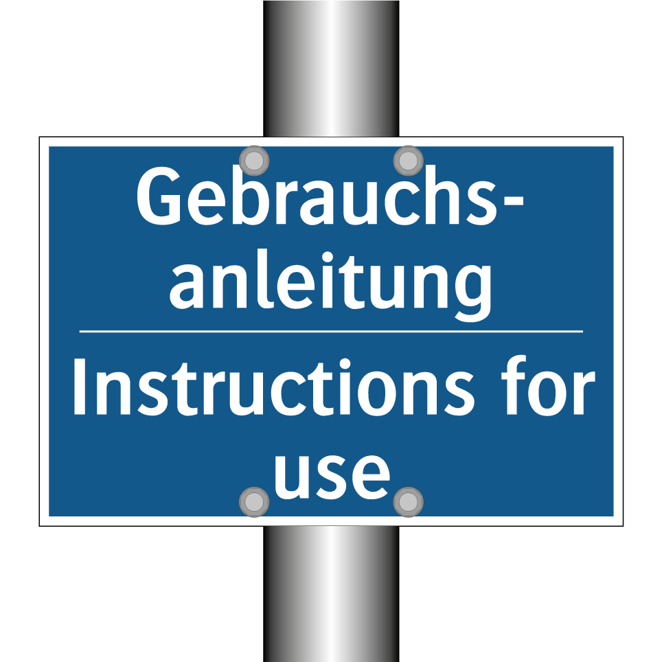 Zweisprachiges Verbotsschild mit deutschem Text Gebrauchs- anleitung und englischem Text Instructions for use