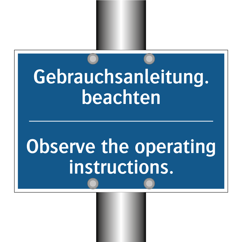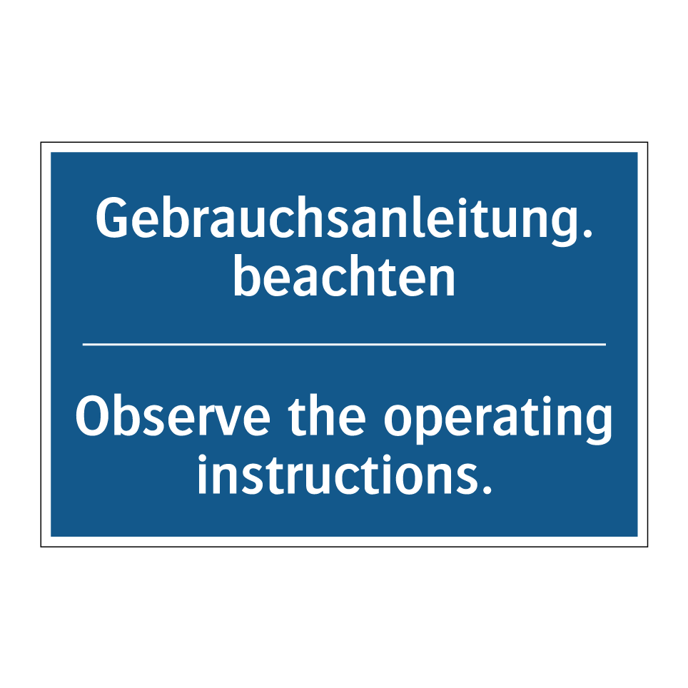 Zweisprachiges Verbotsschild mit deutschem Text Gebrauchsanleitung. beachten und englischem Text Observe the operating instructions.
