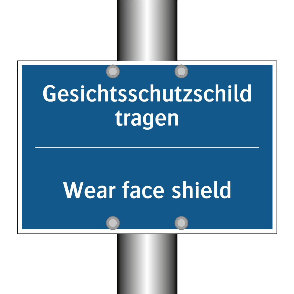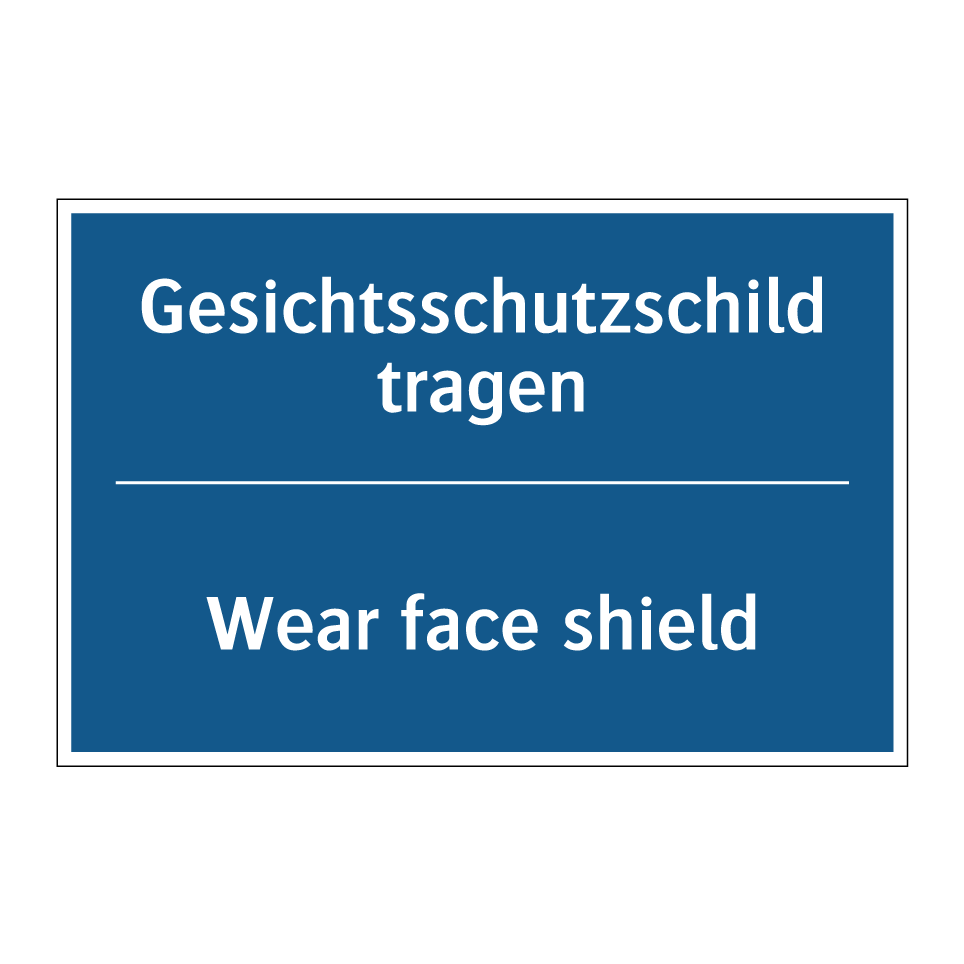 Zweisprachiges Verbotsschild mit deutschem Text Gesichtsschutzschild tragen und englischem Text Wear face shield